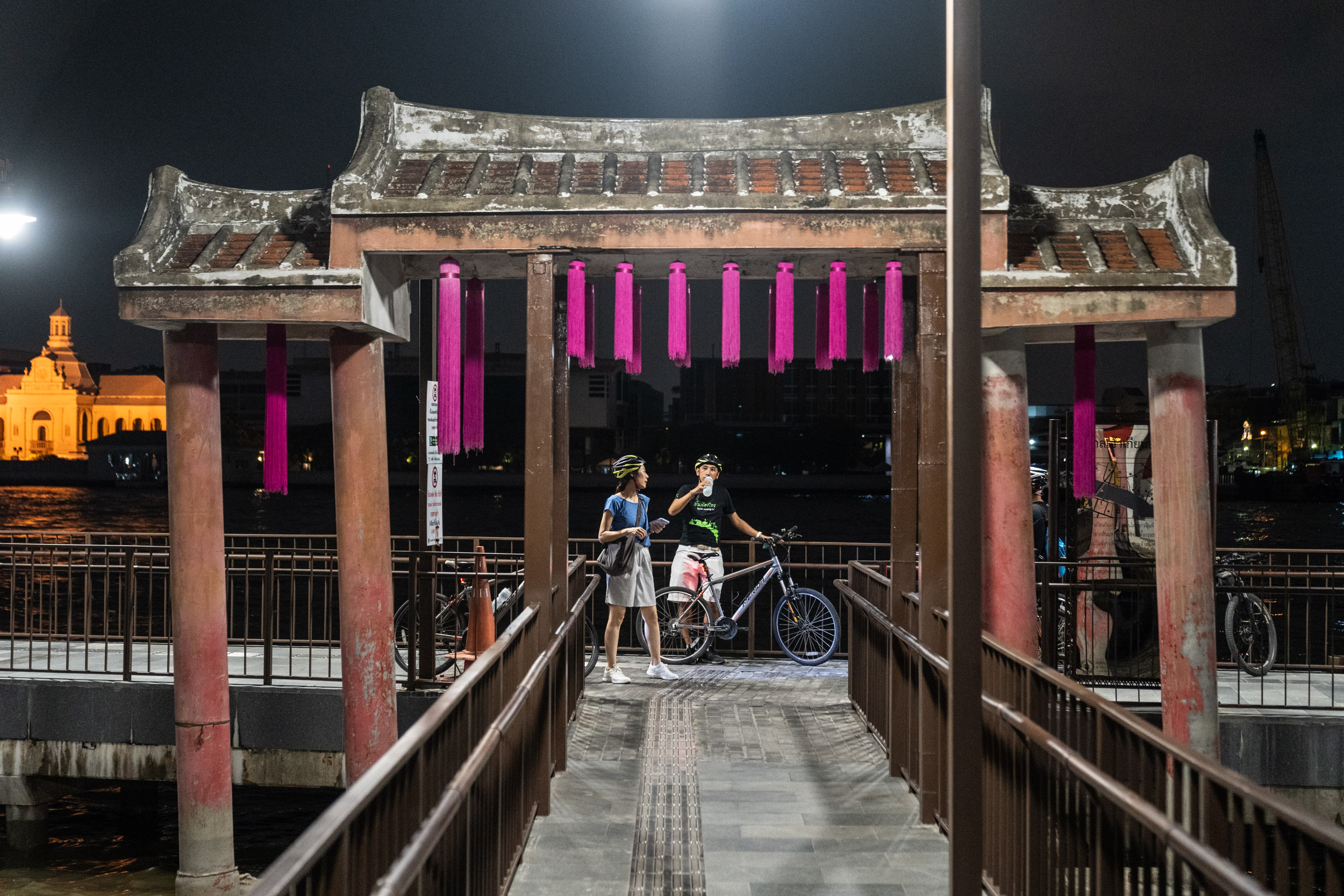 晚上骑自行车游览充满活力的曼谷市,看看它在天黑后变得生机勃勃!您的路线将经过法政大学,然后搭乘当地渡轮穿越湄南河,然后前往宁静的小路前往郑王庙。享受这个圣地的宁静氛围,然后继续沿着河边小径骑行,经过更多寺庙和迷人的教堂。