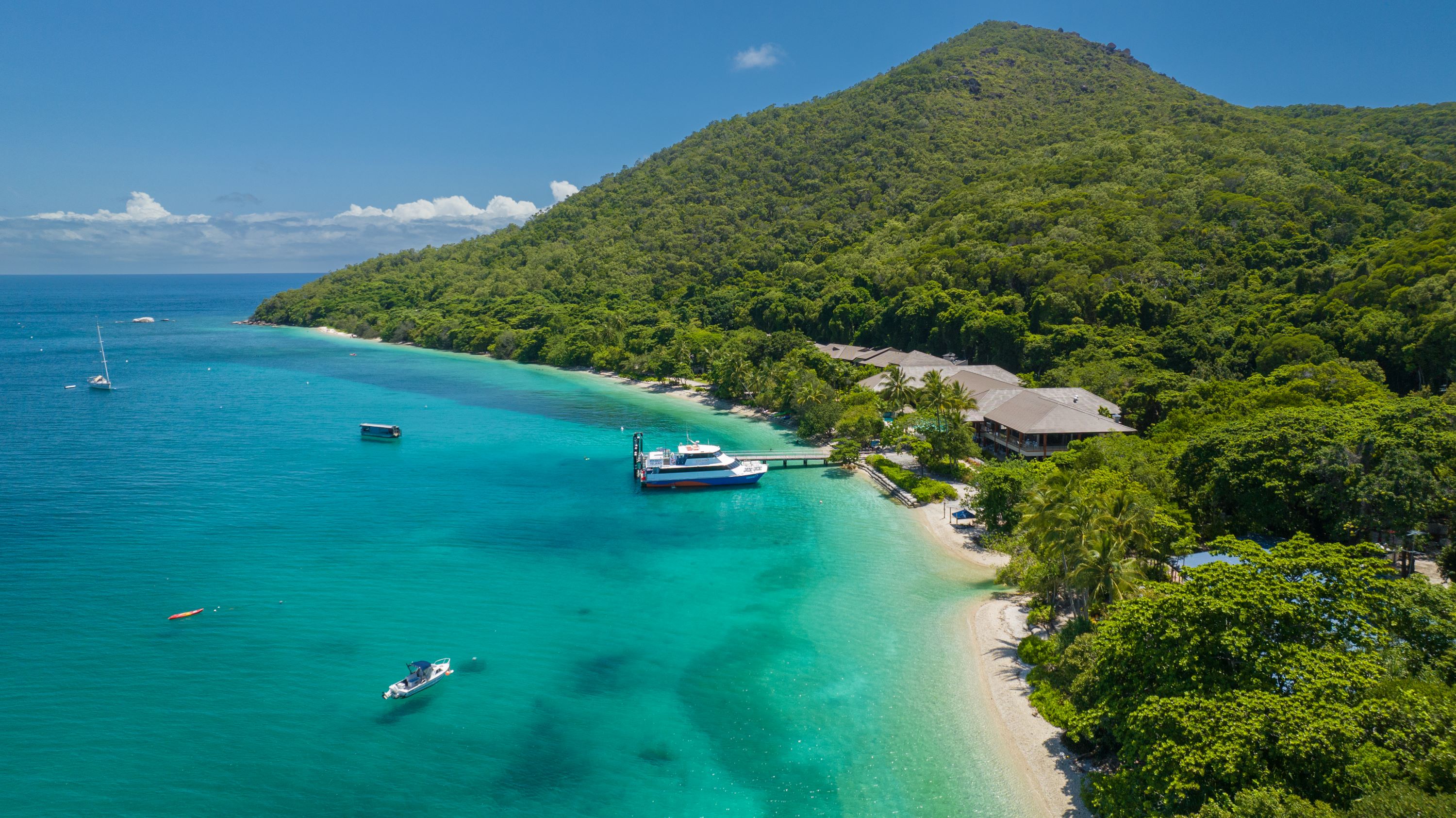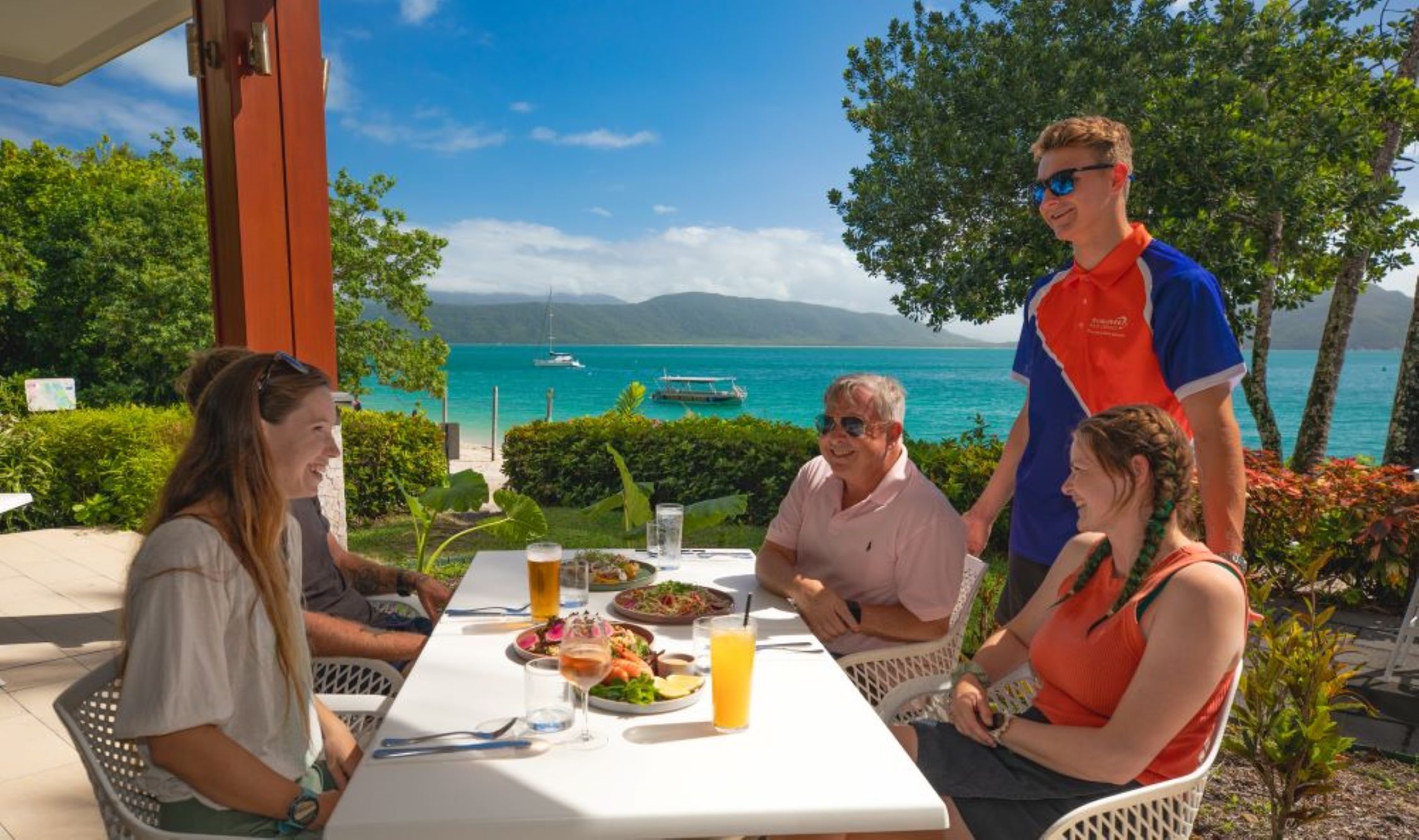 享用热带自助午餐,品尝天堂风味,同时欣赏菲茨罗伊岛迎宾湾的壮丽景色