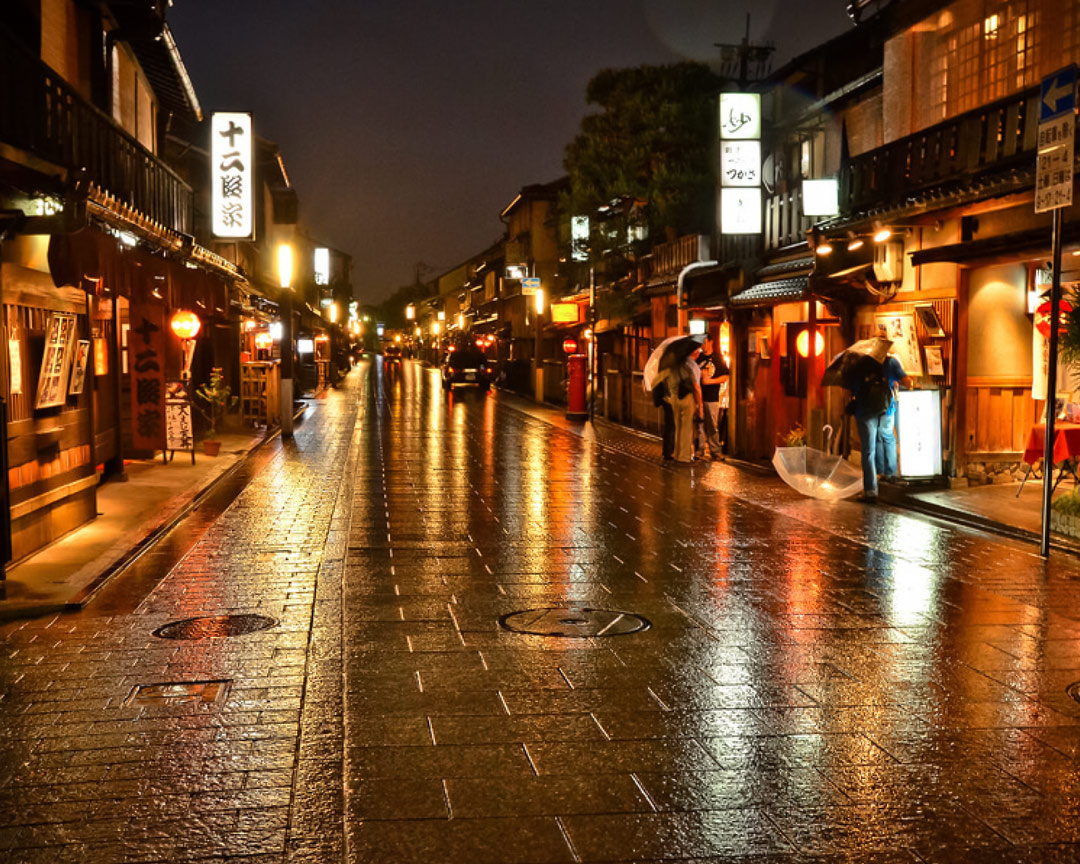 走在祗园闪闪发光的鹅卵石街道上