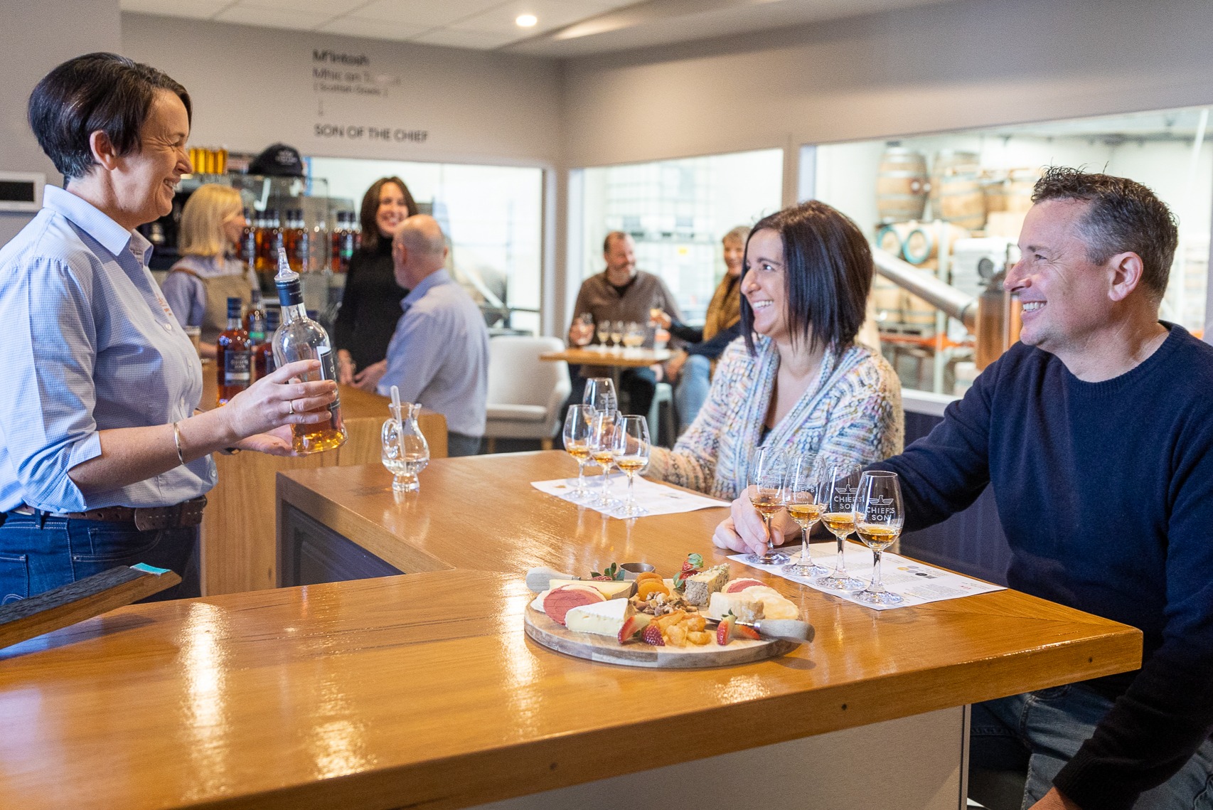 参加由首席酿酒师带领的酿酒厂之旅,并在 Chief's Son 品尝浓郁、味道浓郁的威士忌