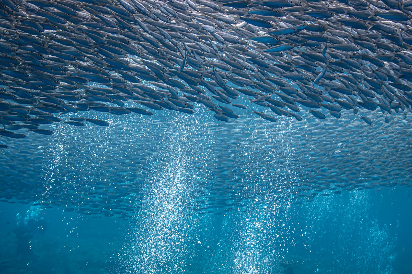 在那帕林浮潜并与邦劳沙丁鱼一起游泳
