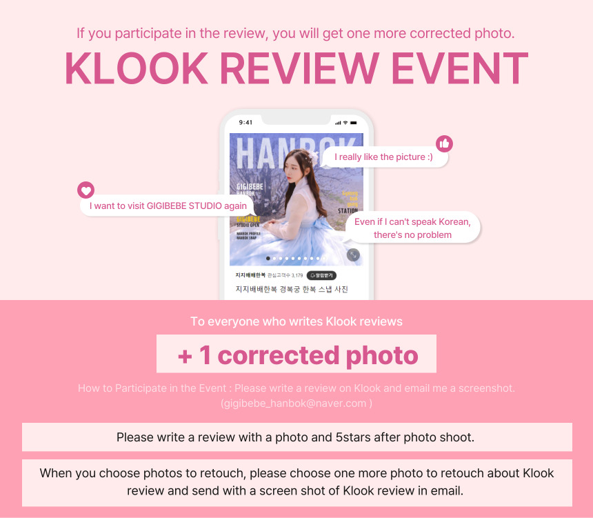 - 天气好的时候可以在户外拍照,即使天气不好的时候也可以在室内韩屋工作室拍出最好的照片。