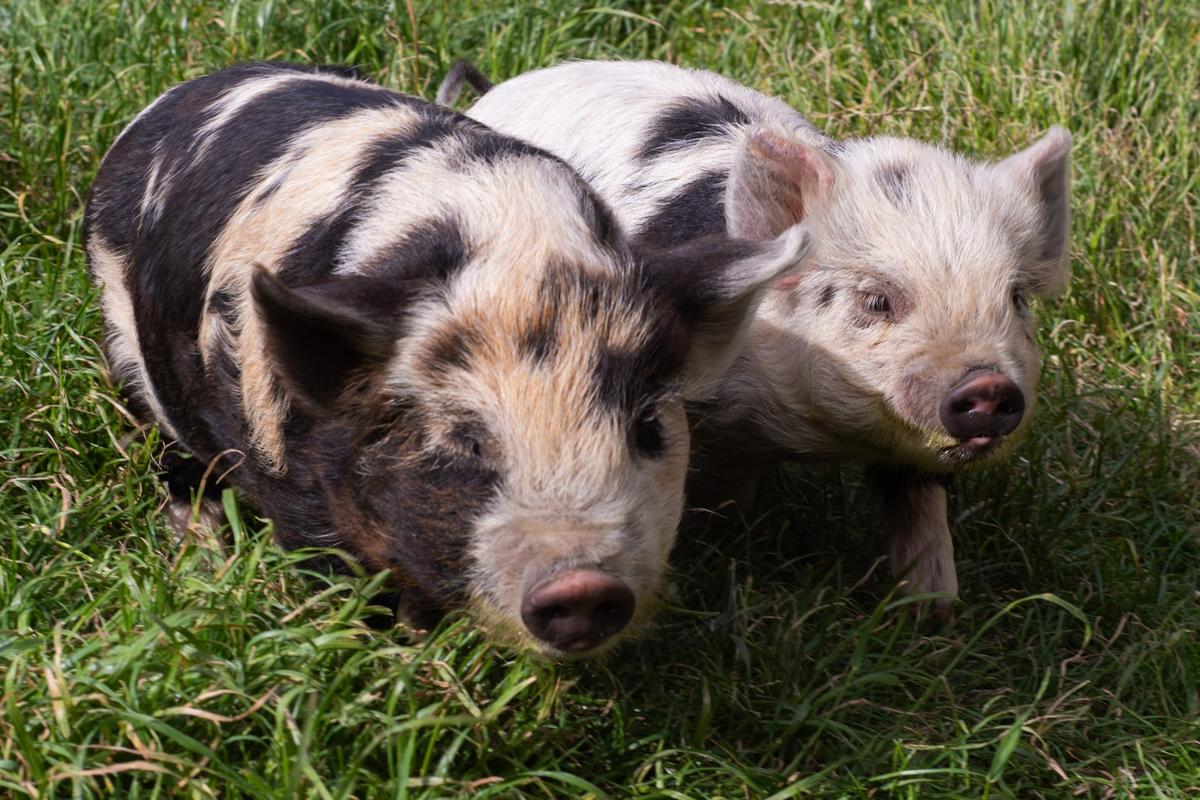 两只顽皮的精灵猪在特卡波湖农田的中心体现出魅力和个性