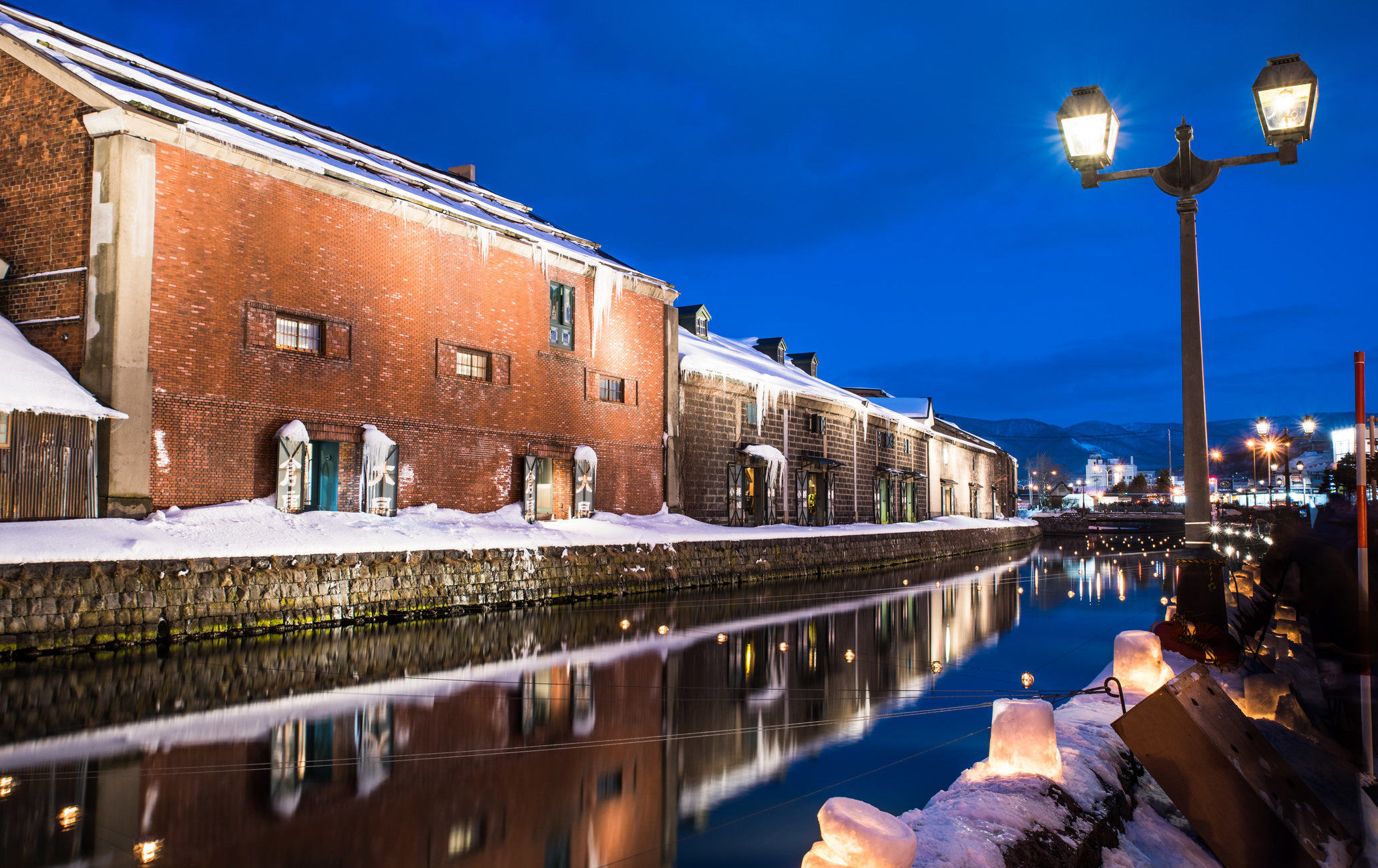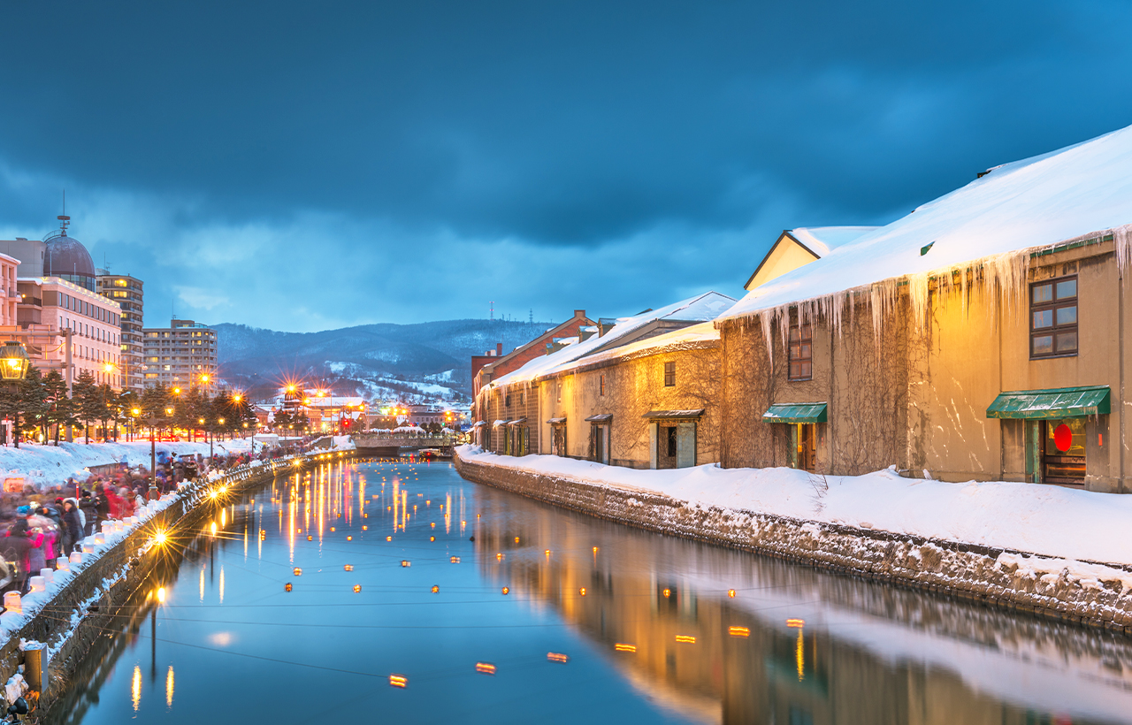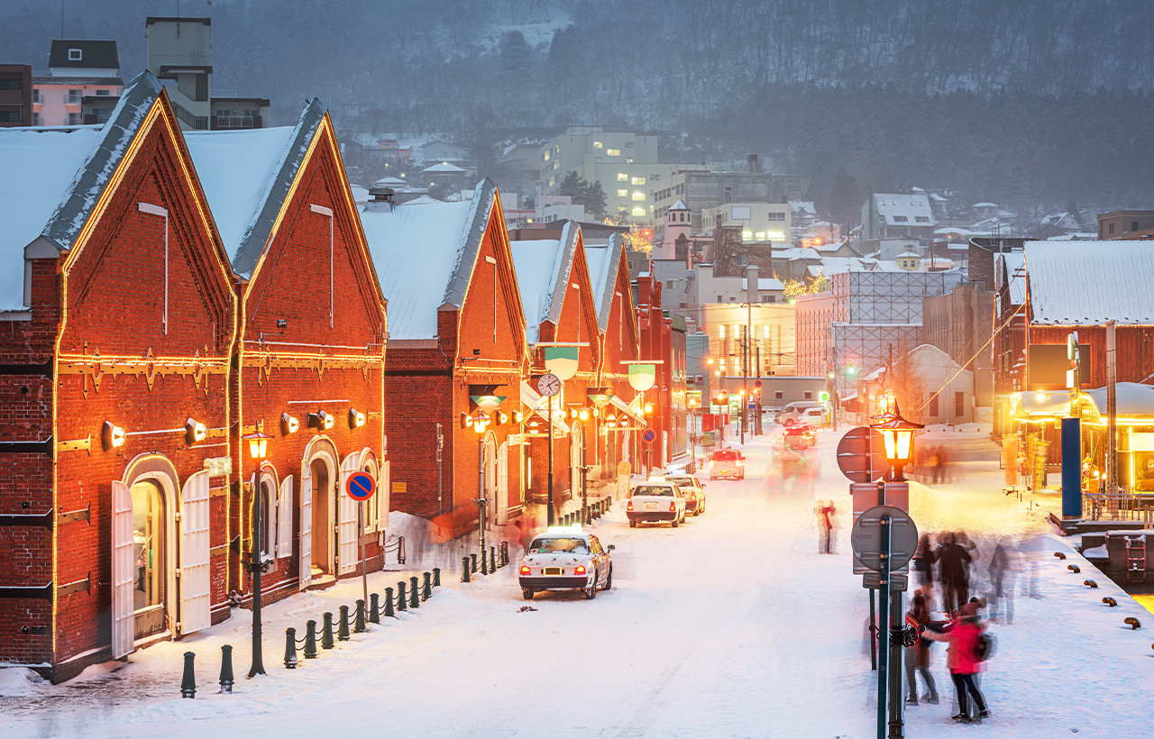 小樽:参观日本唯一富有欧洲风情,在此可与家人朋友漫步于古老运河街道里,周围并排着明治时代开始,由红砖灰瓦所建造的仓库群,运河旁宁静中飘流着悠悠气息