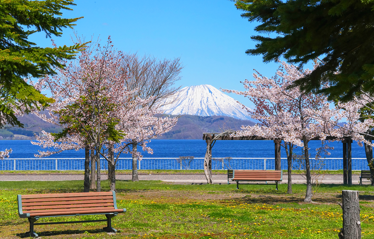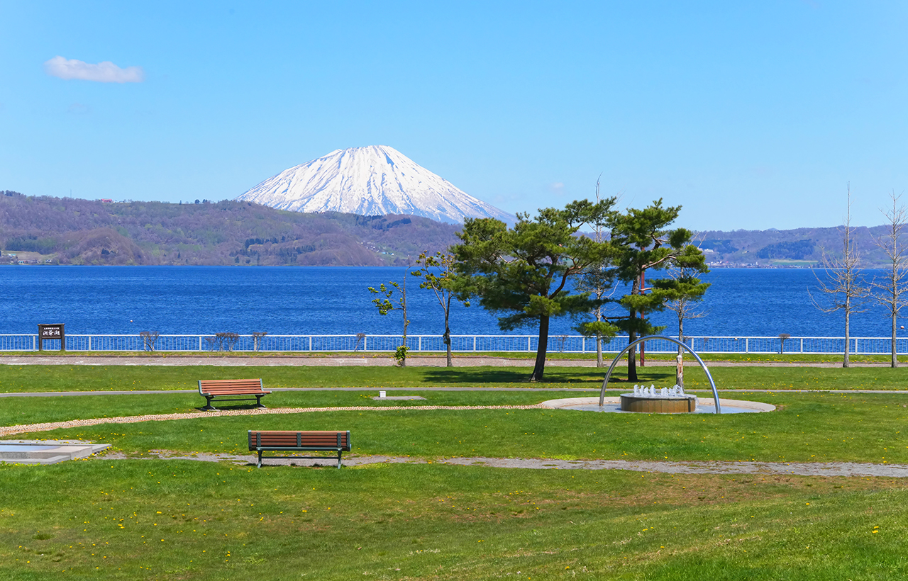 洞爷湖展望台:日本北海道西南部淡水湖。在内浦湾附近。支笏洞爷国立公园的一部分。破火山口湖。直径约 10 公里,近圆形,面积 70.72 平方公里。周长 50 公里。最深处 180.0 米。平均水深 117.0 米。蓄水量 8.19 立方千米。湖面海拔 84 米。日本不冻湖的最北限。