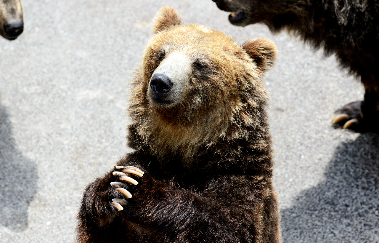 位于昭和新山缆车入口处附近的熊牧场,饲养着约100多只纯种的北海道棕熊。棕熊是北海道体型最大的野生哺乳动物,熊牧场里可以为棕熊喂食