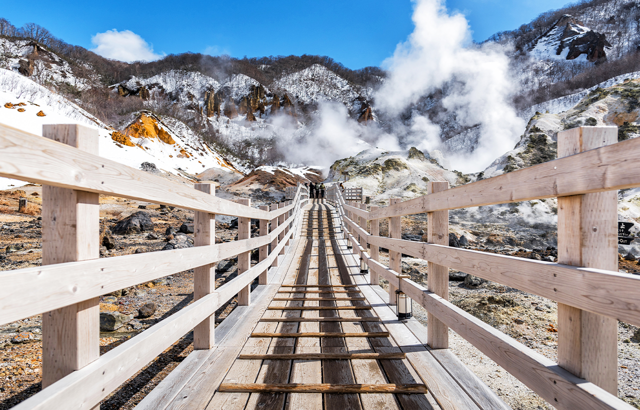 大汤沼是日和山喷火时所形成的爆裂火山口遗迹,池沼底部喷出约130度的硫磺泉,是登别当地各大温泉旅馆的温泉水源头。