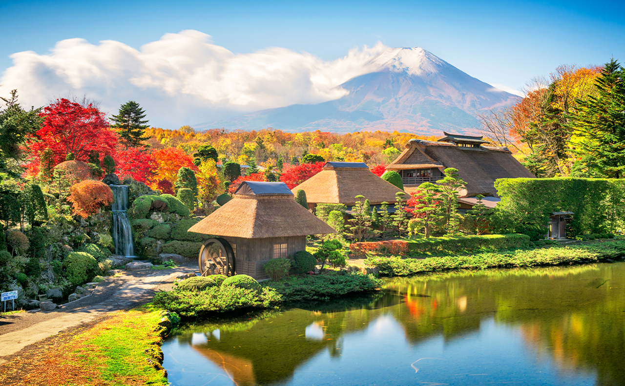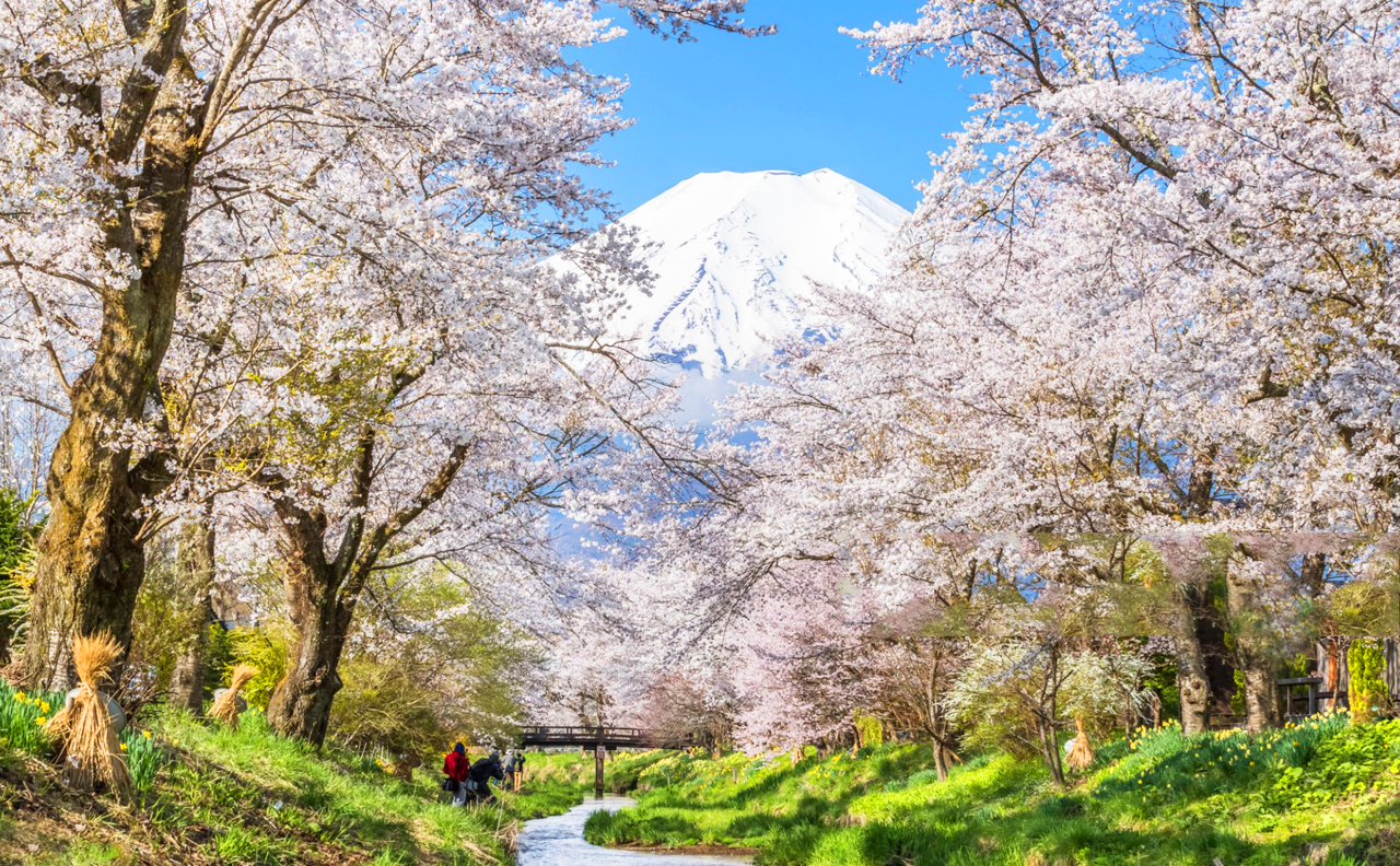 【山梨县忍野八海】 忍野村位于山梨县东南部的富士山麓。从忍野八海眺望的富士山以及池塘和风车等古老的日本风景都是必看景点。天然纪念物忍野八海是泉池,其水源是富士山的地下水。请在庄严而神秘的泉水池中感受富士山的恩惠,享受轻松的时刻。