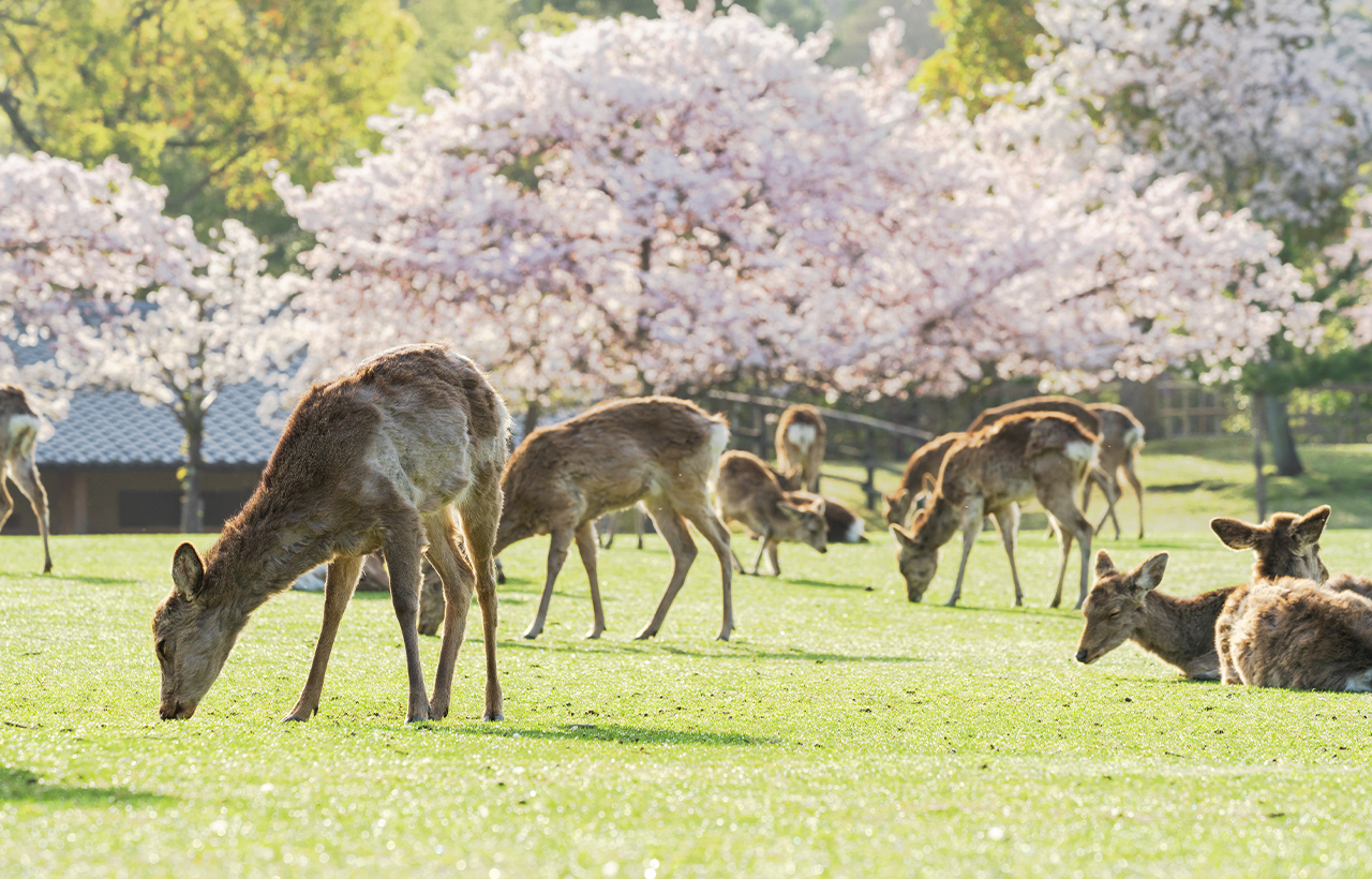 漫舞的樱花,小鹿乱撞,此时的奈良美得像一幅画~