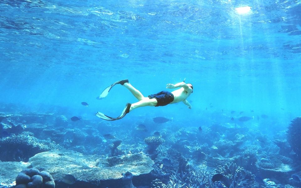 抵达第一个浮潜点,周围环绕着蒂朗岛美丽的古老珊瑚礁。在数百万年的珊瑚中浮潜,欣赏数百种鱼类。
