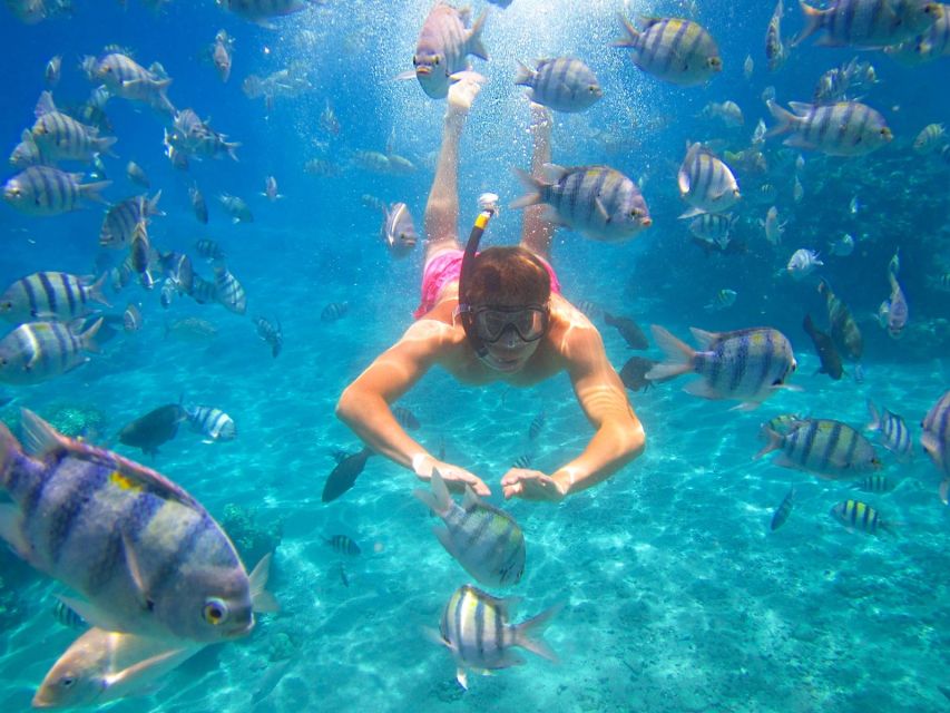 前往蒂朗岛周围另一个令人惊叹的浮潜地点。能见度高达 45 米,您将有机会看到小丑鱼、蝠鲼、海豚和充满活力的珊瑚。