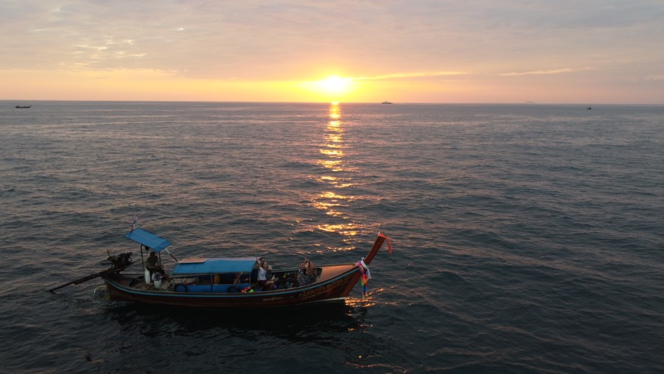傍晚返回码头时,欣赏美丽的日落美景