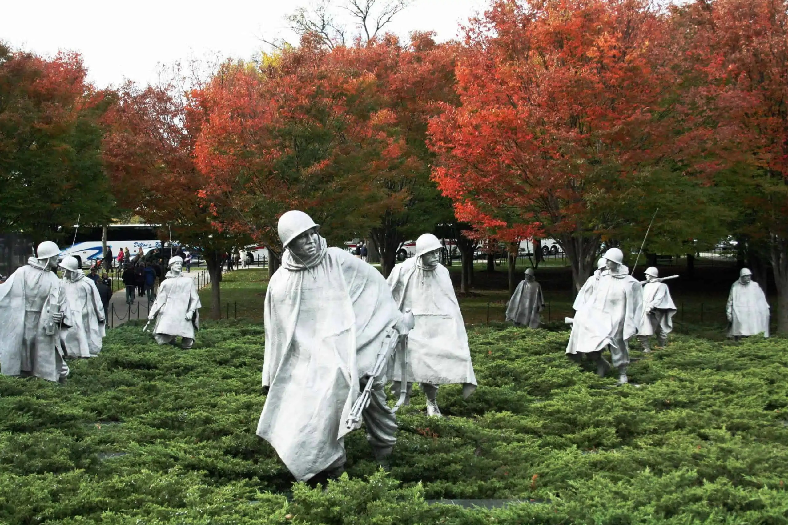 体验朝鲜战争退伍军人纪念碑的庄严宁静,这是勇气和牺牲的辛酸见证