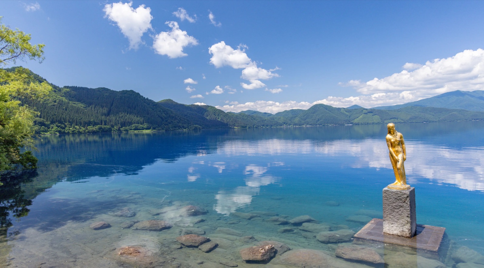 田泽湖 千变万化的湖色,时而呈现靛紫的亮蓝色,时而碧绿,时而湛蓝,非常值得一看。可以乘坐观光游览船、脚踏船,或是划独木舟、皮艇、SUP桨板等,以不同的方式欣赏湖色美景。