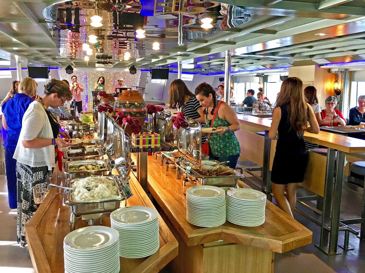 享用美味的自助餐,包括来自世界各地的菜肴和美食