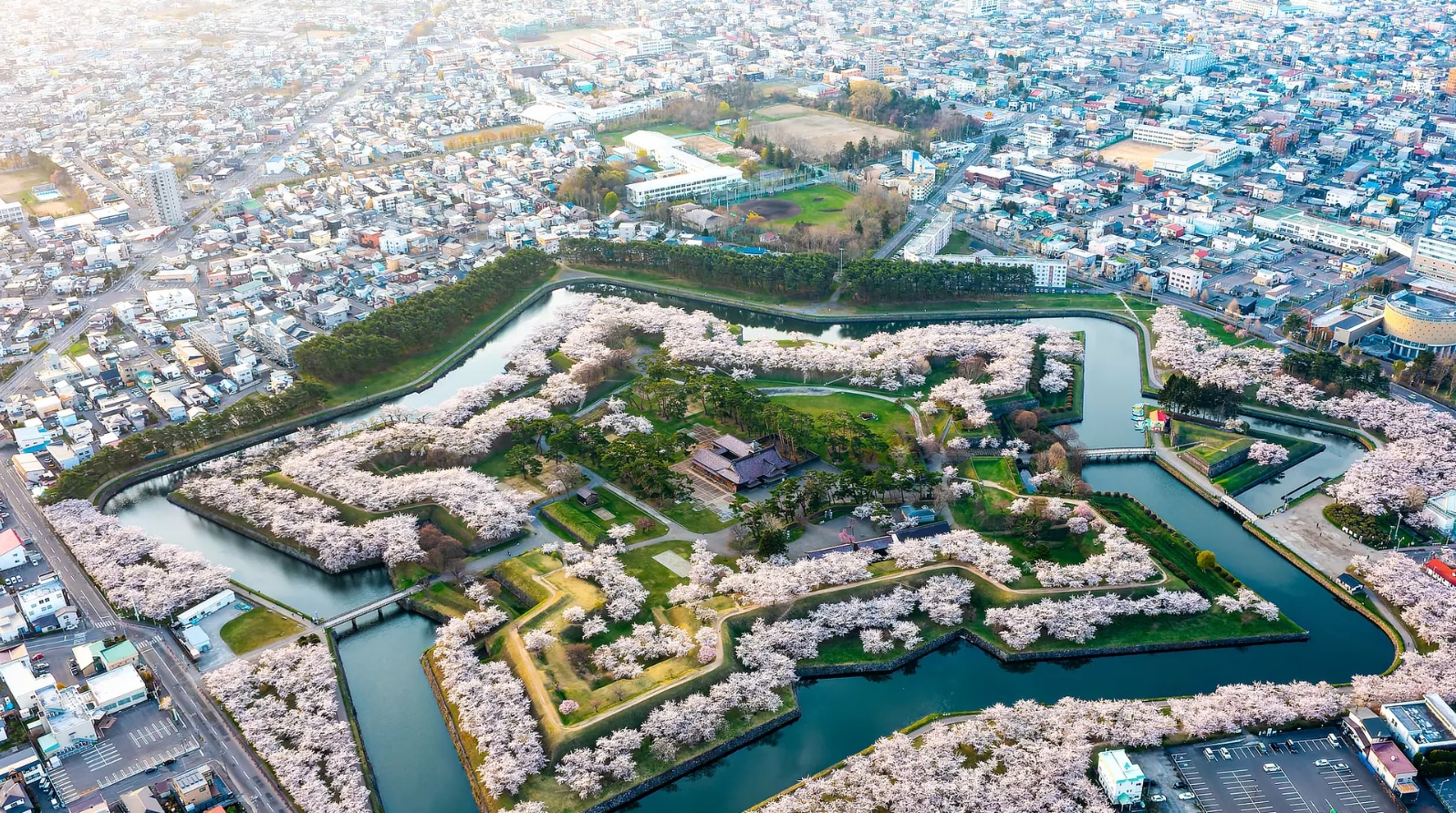 五棱郭是于庆应2年 (1866年) 建成的西式要塞。其后在大正3年 (1914年) 作为「五棱郭公园」对外开放,以观光景点及国家特别史迹吸引众多观光客前来