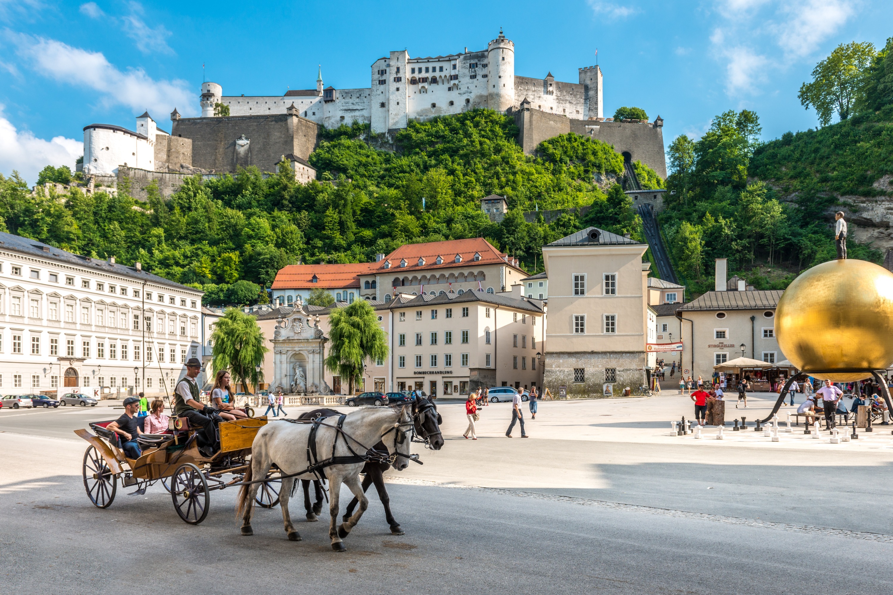 探索萨尔斯堡历史悠久的老城区:乘坐马车游览卡皮特尔广场,欣赏萨尔斯堡堡垒的壮丽景色
