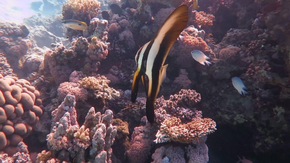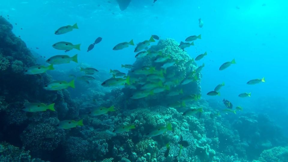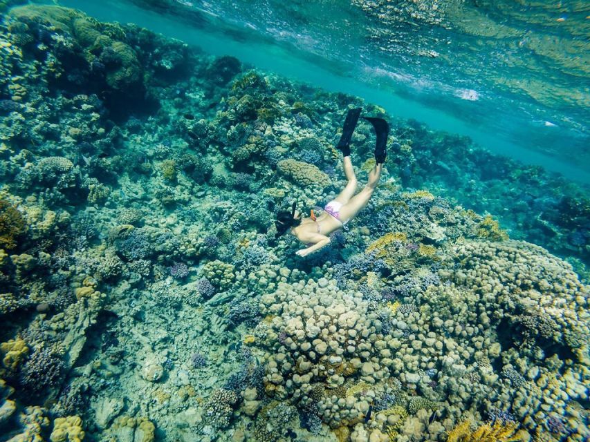 在第二个浮潜地点,探索标志性的红海珊瑚礁,这里有 1,000 多种鱼类和 150 种珊瑚。