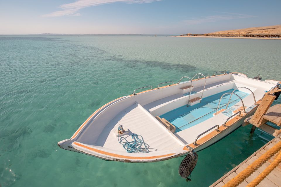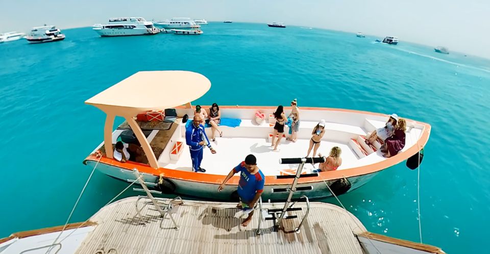 您的冒险之旅从赫尔格达酒店出发,乘车前往码头,在那里您将收集浮潜装备并登上豪华游船前往橙湾岛。您可以在海滩上放松或在清澈的海水中游泳约 2 小时。