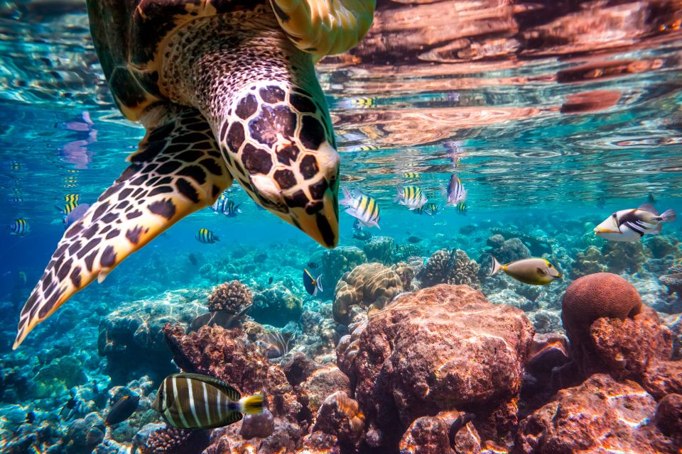 返回船上享用美味午餐和新鲜水果,然后前往第一个浮潜点。在专业教练的指导下,探索充满活力的海洋生物。