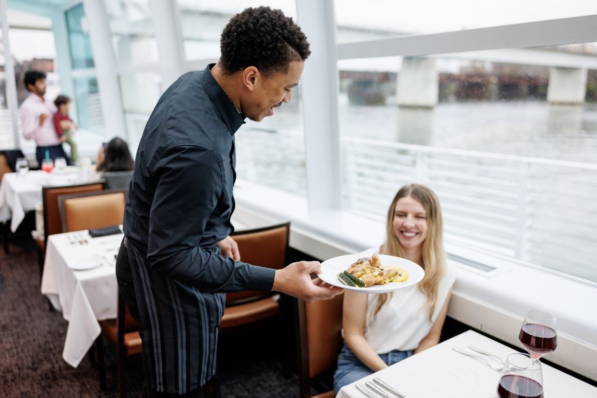 在 Premier Washington, DC Cruises 上,选择您完美的波托马克假期:早午餐、午餐或晚餐之旅。每间客房都拥有独特的氛围,可欣赏华盛顿特区标志性古迹无与伦比的景观。早晨,您可以享用美味的自助餐和无尽的含羞草,并由现场 DJ 演奏小夜曲。下午,您可以享受轻松的午餐巡游,享用特色菜肴和鸡尾酒,与风景相得益彰。晚上是尽情享受的时刻:晚餐巡游提供精致美食,欣赏暮色美景,并在星空下起舞。每次体验时,您都可以享受我们室内休息室的舒适和露天甲板上的新鲜空气。无论一天中的任何时候,都可以从水上欣赏首都的美景,并透过这些一流的游轮选择让您的一天难忘
