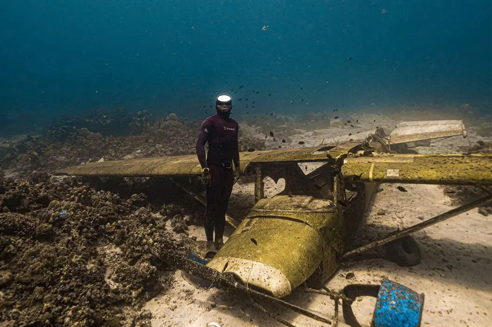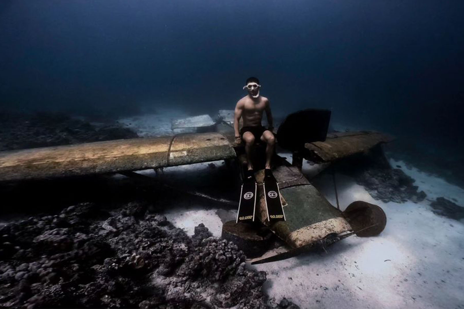 探索薄荷岛邦劳最受欢迎的自由潜水瑰宝之一。飞机残骸深度约 6 至 8 米,即使对于自由潜水初学者来说也很容易进入。易于访问、浅深度和鲜艳的色彩产生了可以想像到的最令人惊叹的照片和影片。