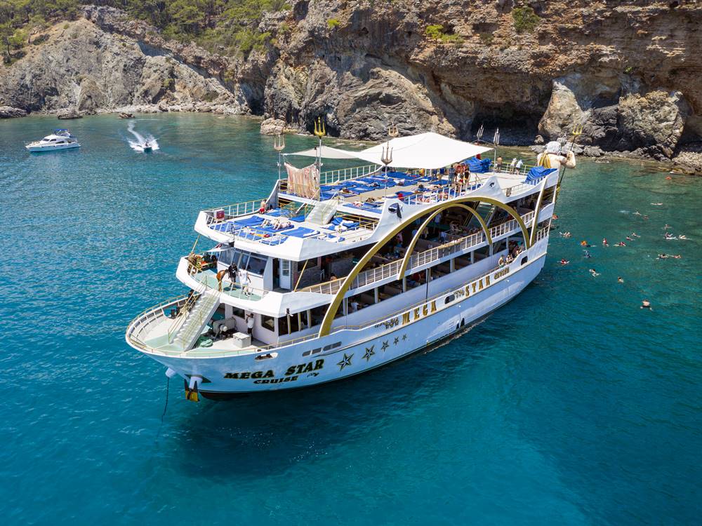 明星游艇巡游。这个全日冒险之旅是您享受沐浴在阳光下的放松、清澈见底的海水和难忘回忆的门票。从您在安塔利亚的住宿开始便捷的接客服务。在上层甲板上放松身心,呼吸海风,拥抱大自然的壮丽宁静。游泳、享受日光浴,然后跳进地中海清澈的海水,畅游一番。如果您喜欢放松,可以在甲板上休息,喝杯清凉饮料,享受温暖的阳光。加入船上的泡沫派对,尽情跳舞、欢笑。在泡沫的包围下,您将随着音乐而快乐,并创造充满欢乐和兴奋的持久回忆。品尝美味的当地风味烧烤午餐。立即预订您的位置,准备在地中海水域度过幸福的一天。