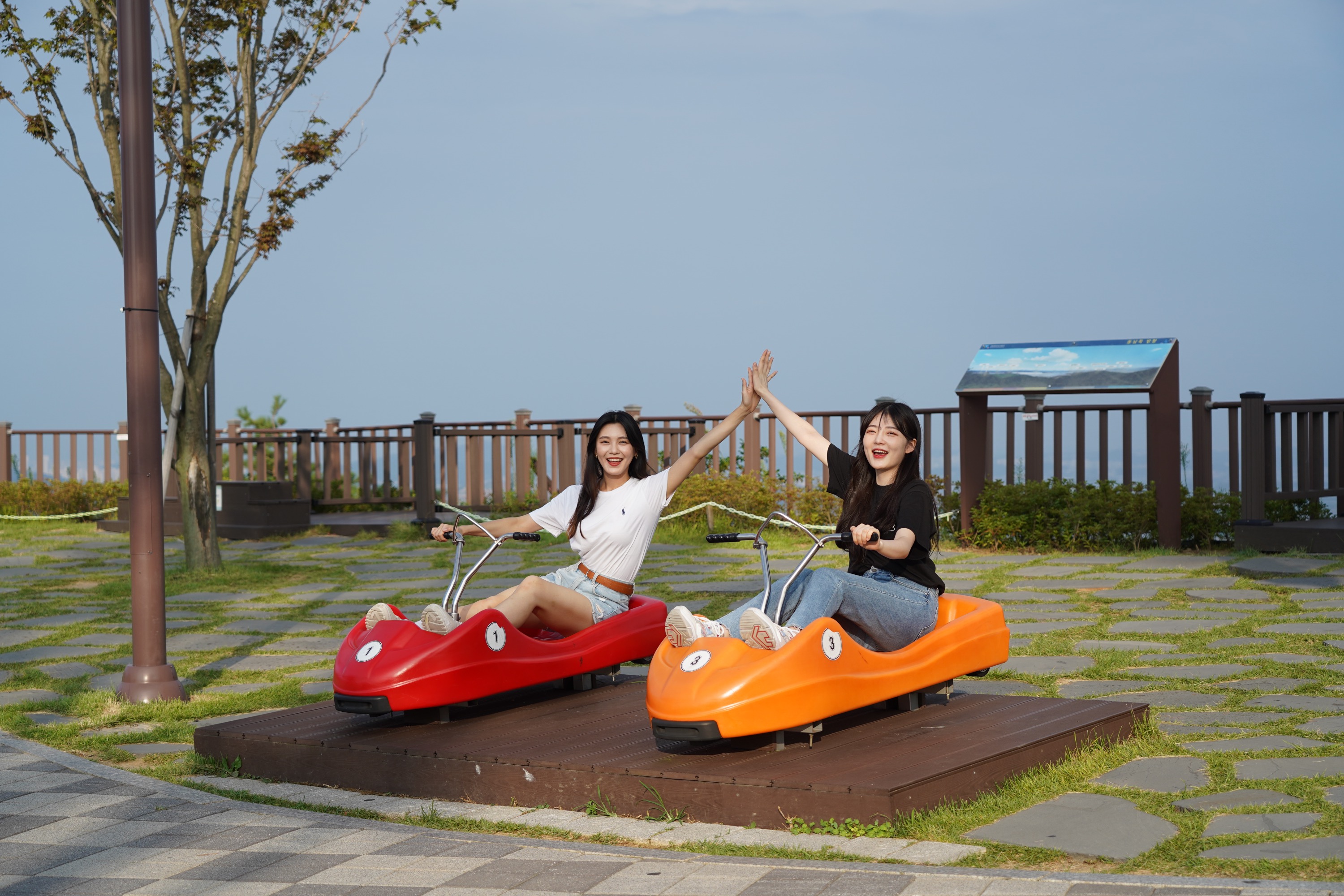 江华海滨度假村斜坡滑车路线长1.8公里,共有2条路线。顶层车站空中露台可俯瞰三面大海。让我们一起来感受雪橇的速度吧!