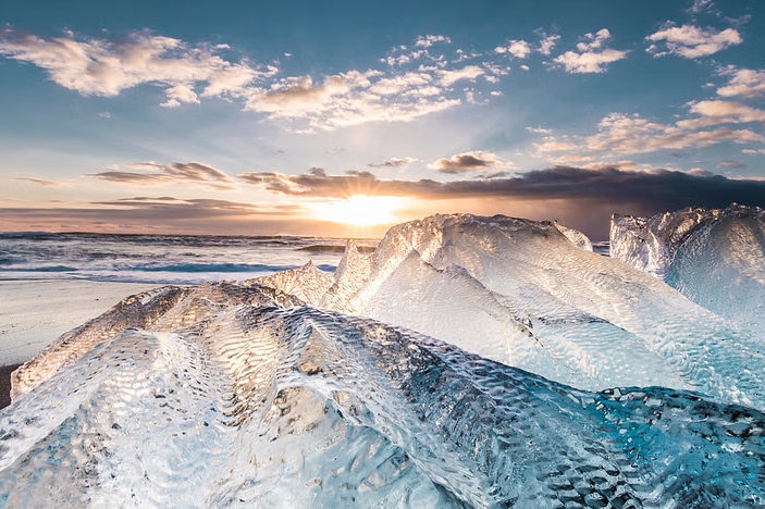 杰古沙龙冰河湖 (Jökulsárlón Glacier Lagoon),冰山在水晶般清澈的美丽与奇迹交响乐中翩翩起舞