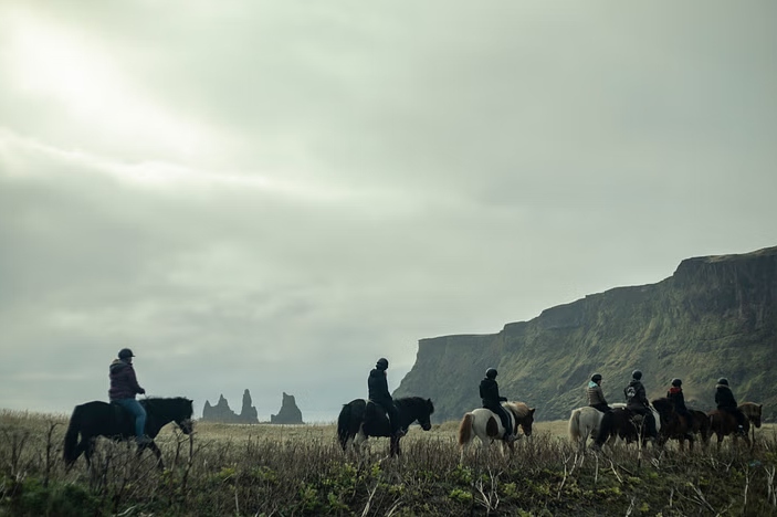 骑马穿越令人惊叹的风景,和谐与自然无缝融合