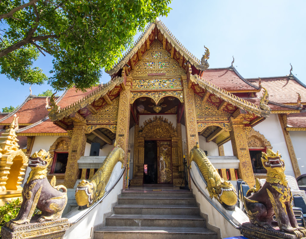 Wat Ban Tawai:停放自行车后,我们将花一些时间四处走走,欣赏木雕师的手工艺。