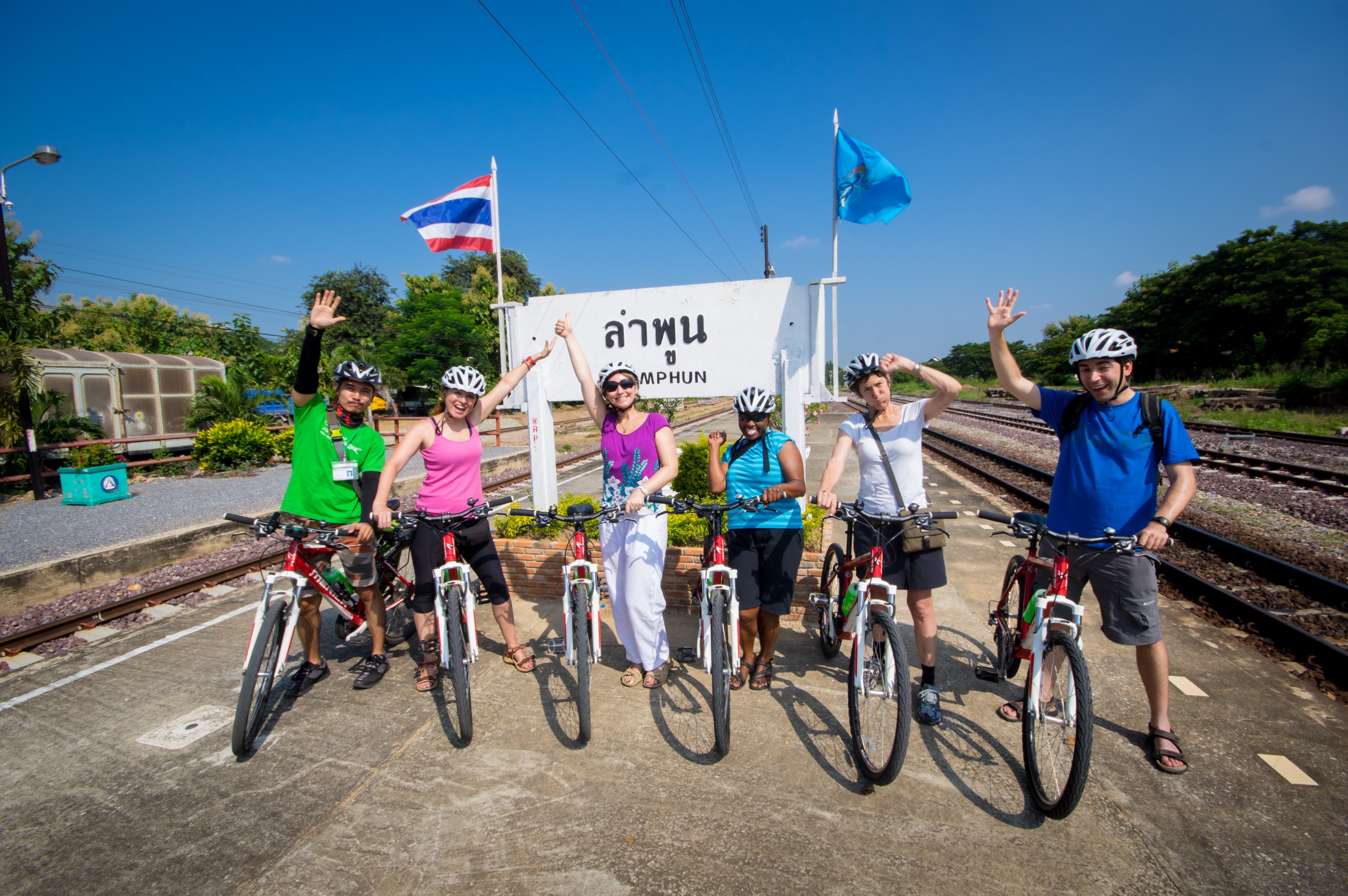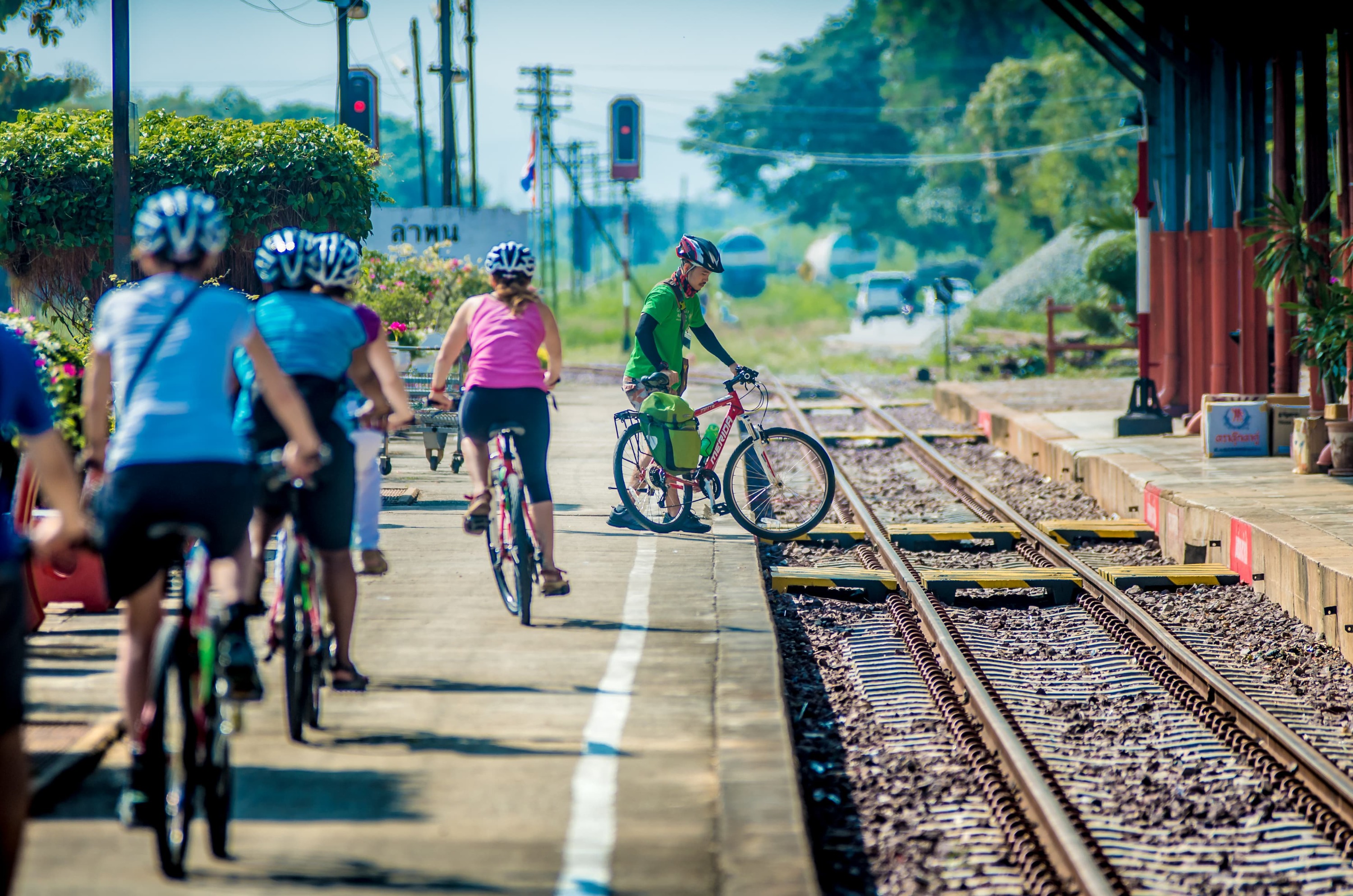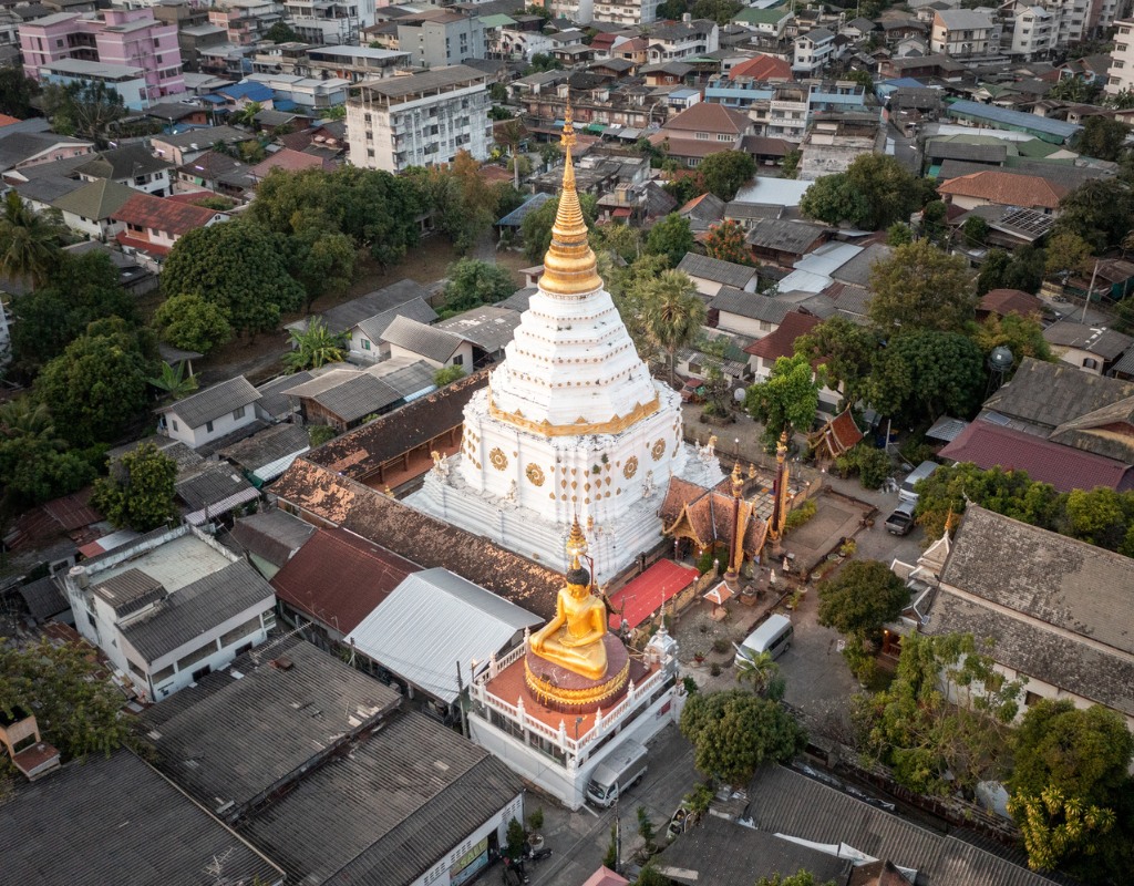 从 Wat Phra That Hariphunchai 出发:从南奔火车站骑自行车穿过安静的街道和小巷,经过古城墙