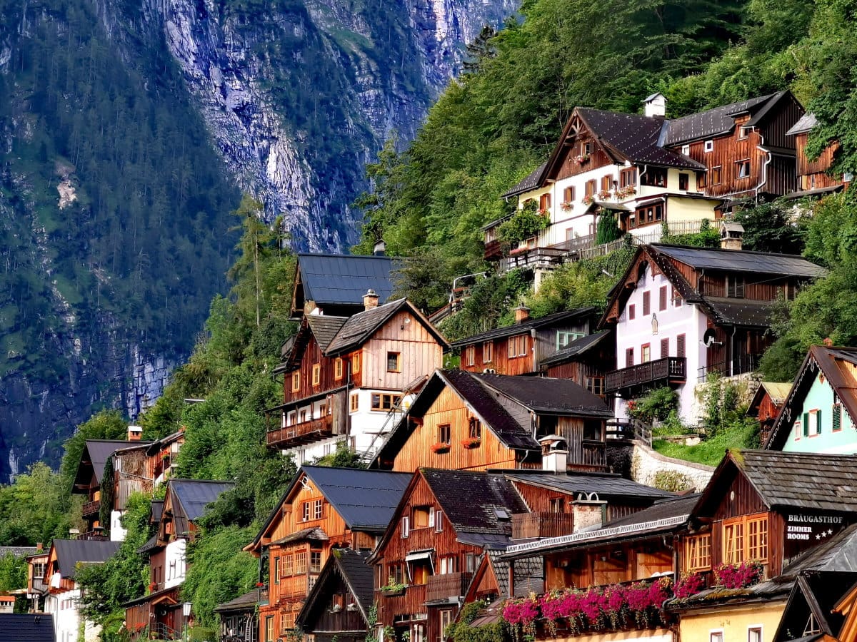 - 哈尔施塔特是奥地利萨尔茨卡默古特山区哈尔施塔特湖西岸的一个村庄。 16 世纪的阿尔卑斯房屋和小巷遍布咖啡馆和商店。缆索铁路连接萨尔茨世界 (Salzwelten)(一座拥有地下盐湖的古老盐矿)和哈尔施塔特天空步道 (Skywalk Hallstatt) 观景台。一条小径通往埃赫恩谷冰河花园,那里有冰河坑洞和 Waldbachstrub 瀑布