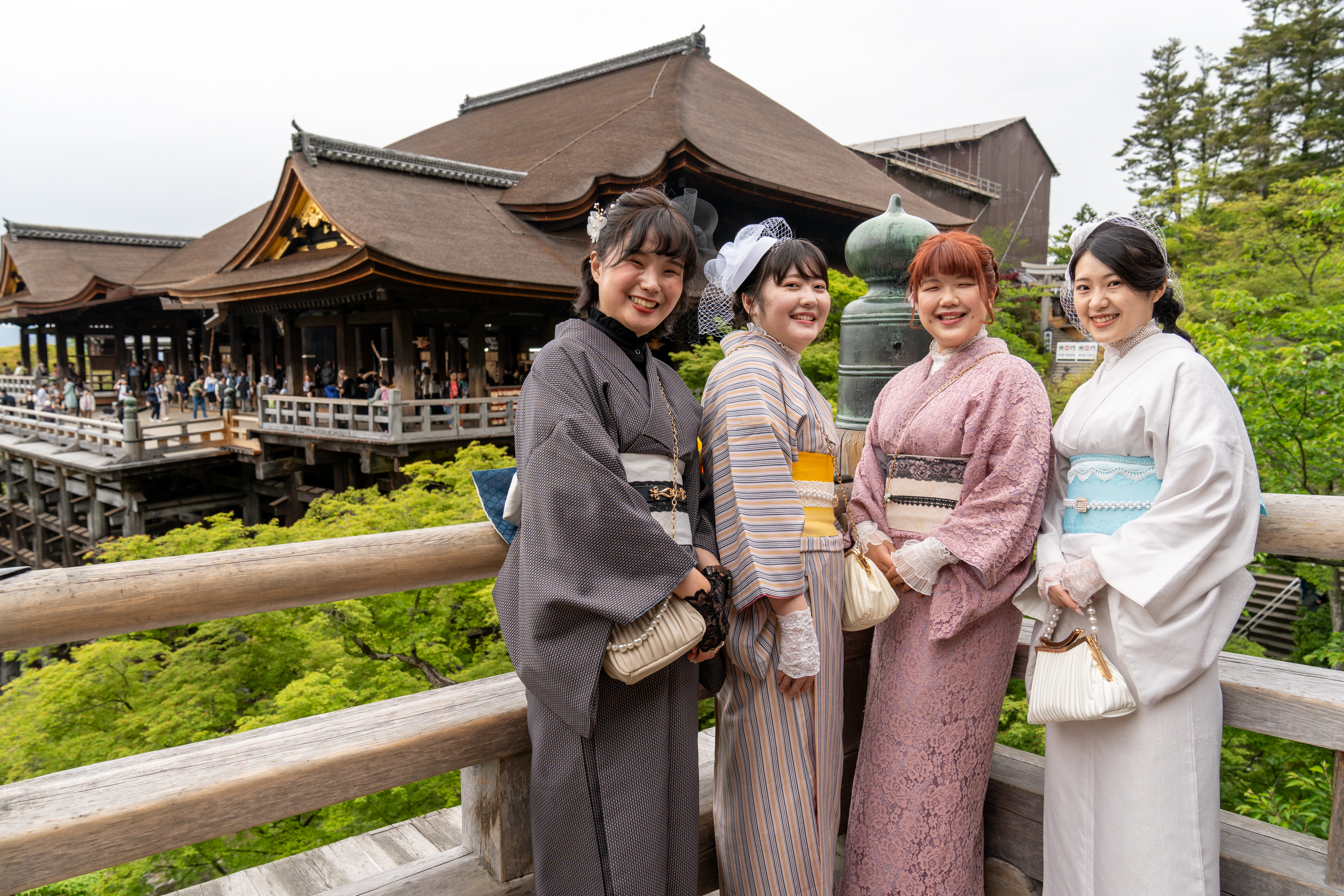 穿着传统的日本和服,您可以在京都著名的只园地区、八坂神社和清水寺漫步。