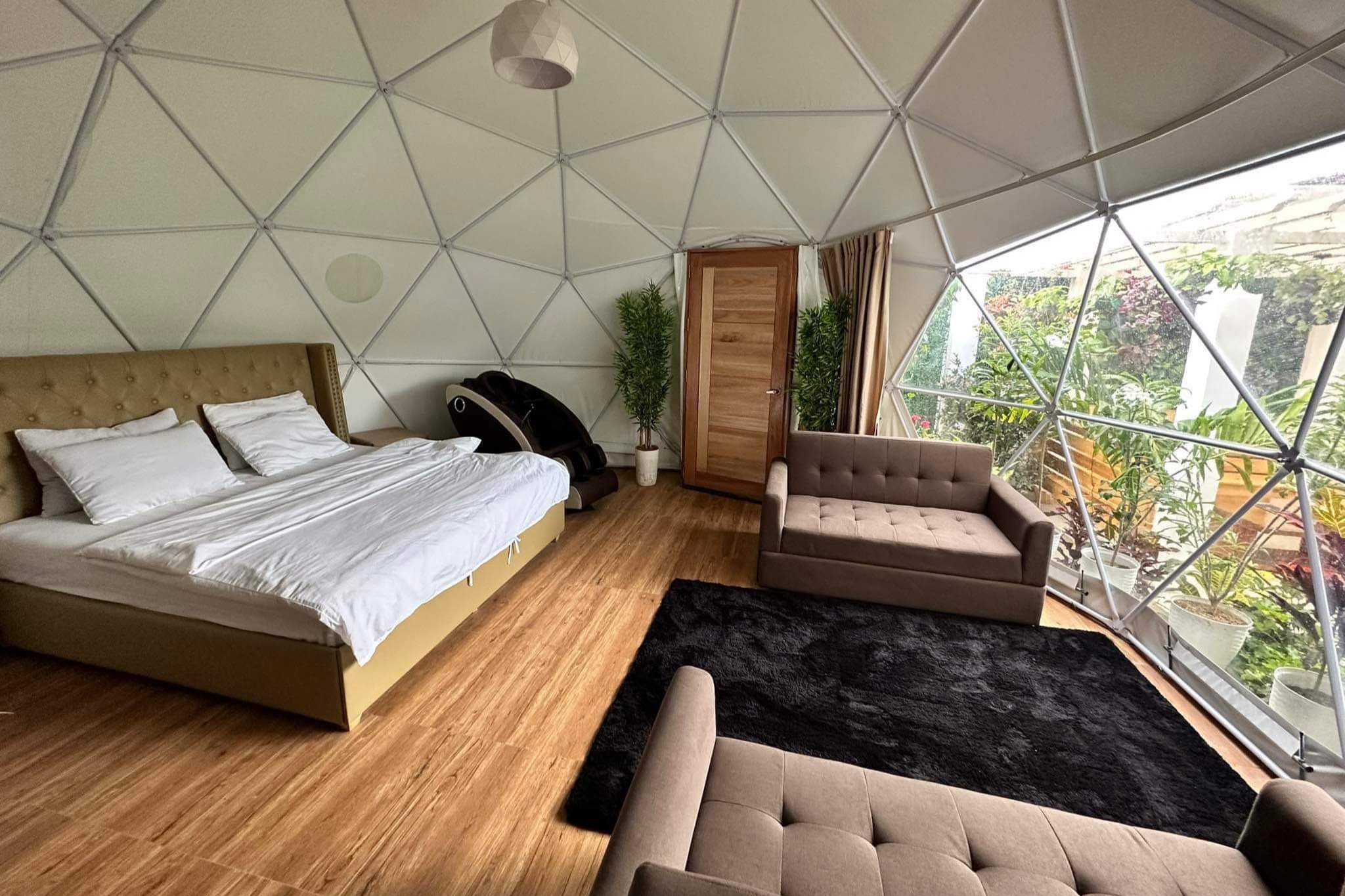 在圆顶房间享受一些休息时间,或者回到配有沙发床的舒适小房子