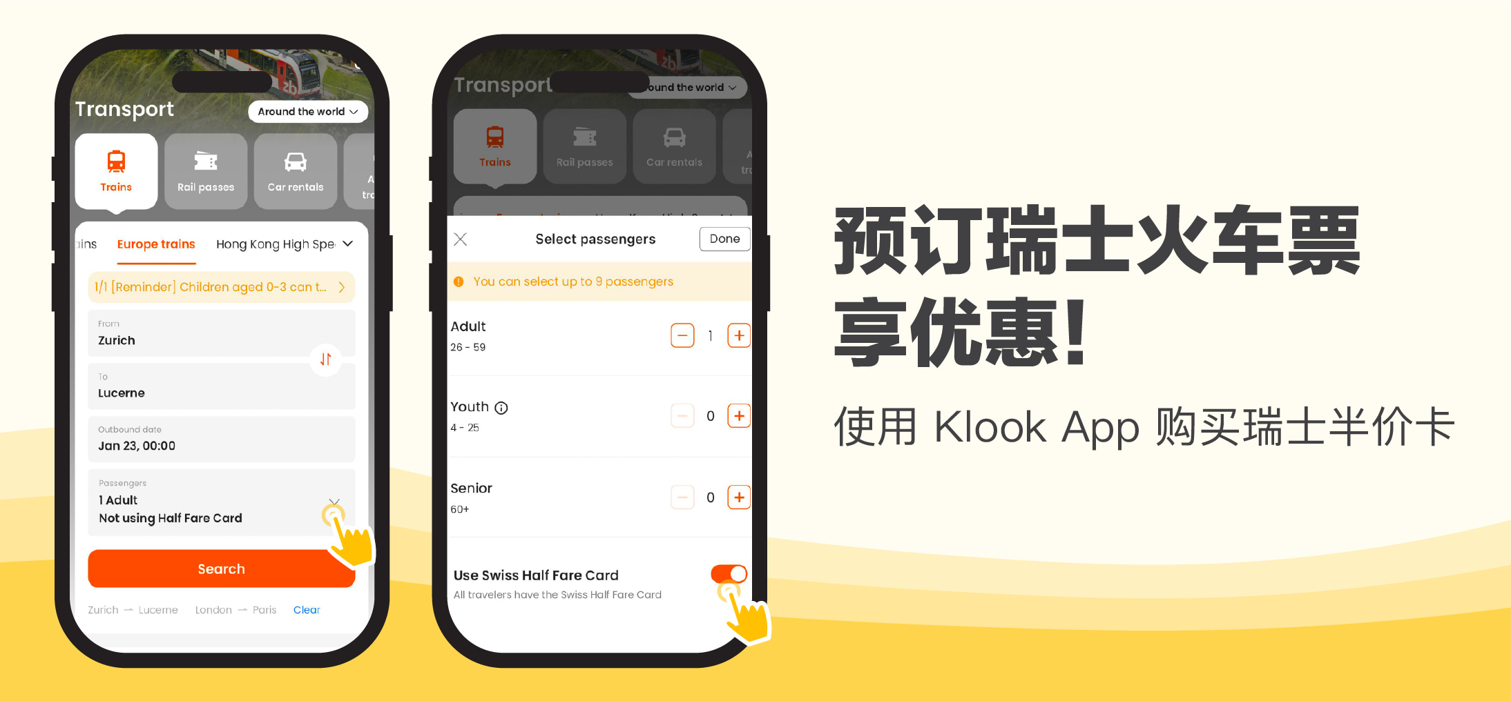 打开 Klook App,使用瑞士半价卡预订瑞士火车票省更多!