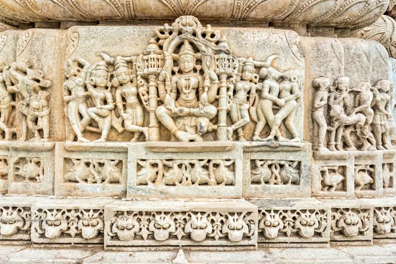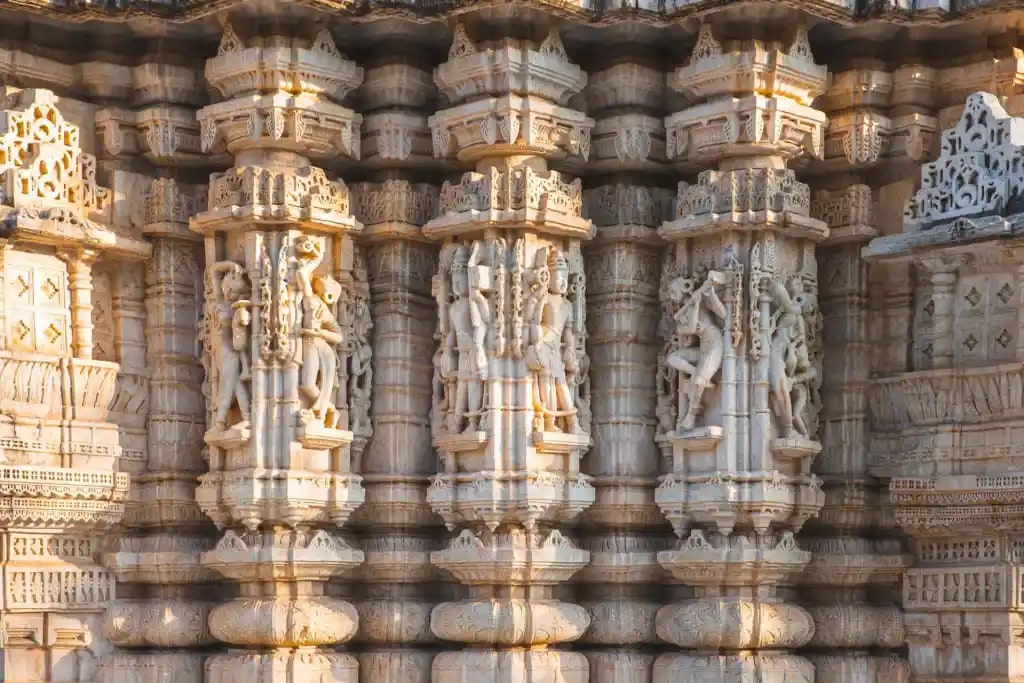 **拉纳克普尔耆那教寺庙** 拉纳克普尔是印度最大的耆那教寺庙建筑群,其历史可追溯至 15 世纪。这座雕刻精美的大理石寺庙是供奉耆那教第一位提坦卡拉(Tirthankara) 的阿迪纳塔(Adinatha)。 ,位于著名的耆那教寺庙建筑群旁。苏里亚纳拉扬神庙 (Surya Narayan Temple) 供奉印度教太阳神苏里亚 (Surya)。 (寺庙仅在 1200 点开放。不得佩戴皮带、鞋类、裸腿和黑色服装)