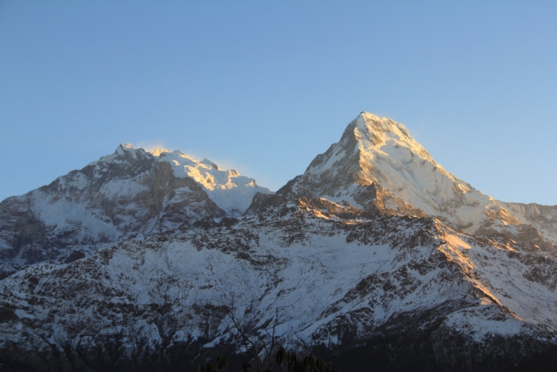 第 3 天:清晨 5 点,徒步前往 Poonhill(3210 米),欣赏安纳普尔纳峰、道拉吉里峰和鱼尾峰的日出美景。返回酒店,徒步前往 Ghandruk,全程 8 小时(2100 米)。在茶馆过夜。