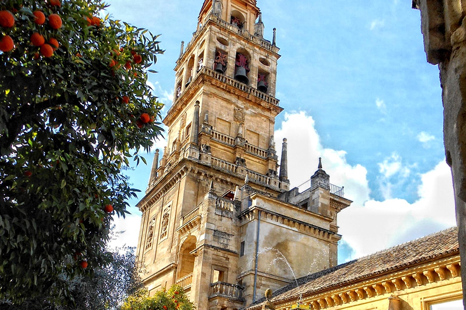 标志性的科尔多瓦大教堂钟楼以永恒的优雅为城市天际线增添光彩