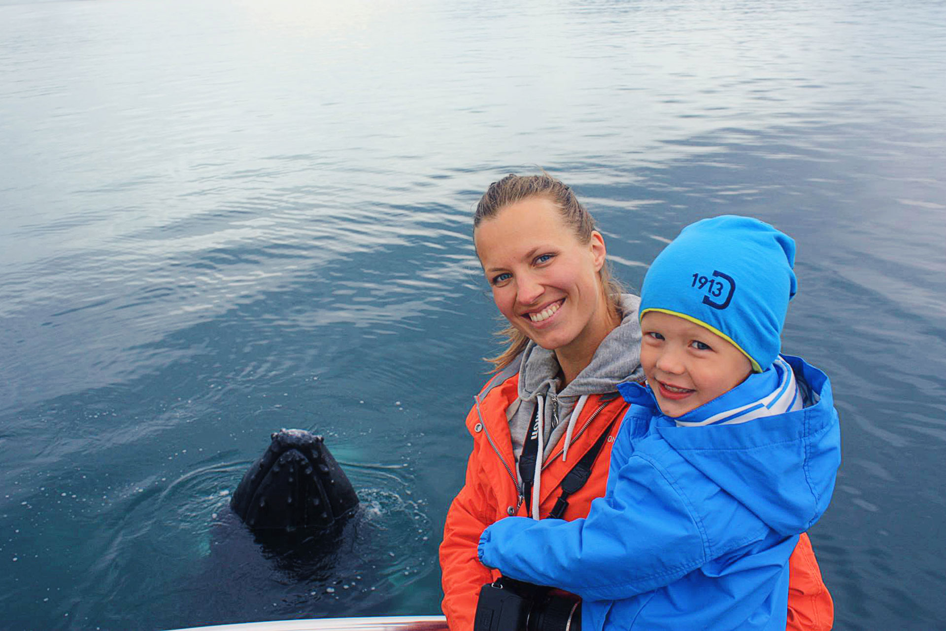 在 Arskogssandur 乘船游览中与座头鲸合影留念,留下难忘的回忆