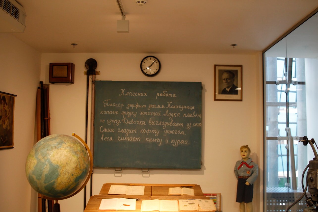 沉浸在描绘那个时代学校制度的展示中