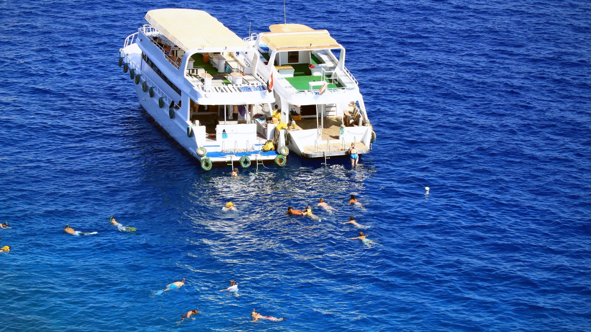 从赫尔格达启航,开启一场难忘的红海冒险之旅,体验浮潜、游泳和海豚观赏!乘坐舒适的空调车从酒店出发,前往码头。登上装备精良的船只,巡游到迷人的珊瑚礁景点,那里是浮潜和探索丰富多彩的海洋生物的理想场所。体验香蕉船和沙发游乐等水上运动的刺激,为您的一天增添乐趣。留意海豚,如果幸运的话,还可以与这些壮丽的生物一起游泳!在船上享用美味的自助午餐,并享用无限量的软饮和热饮。沐浴阳光,捕捉精彩瞬间,然后轻松无忧地返回酒店,结束您的冒险之旅。