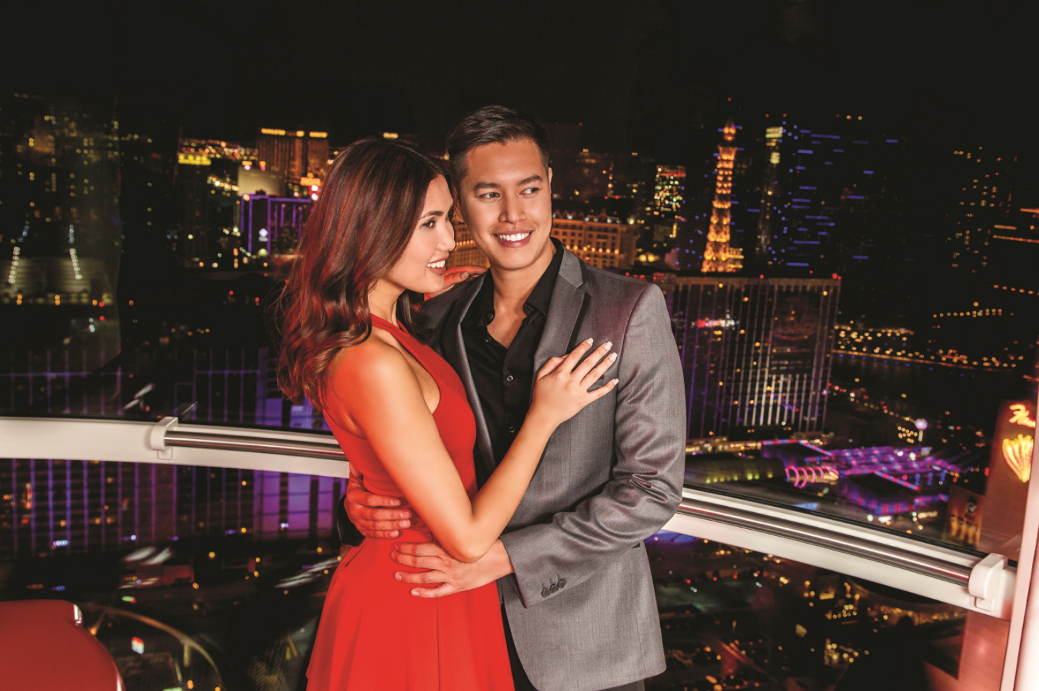 与好友一起乘坐豪客摩天轮,俯瞰拉斯维加斯迷人的城市风光