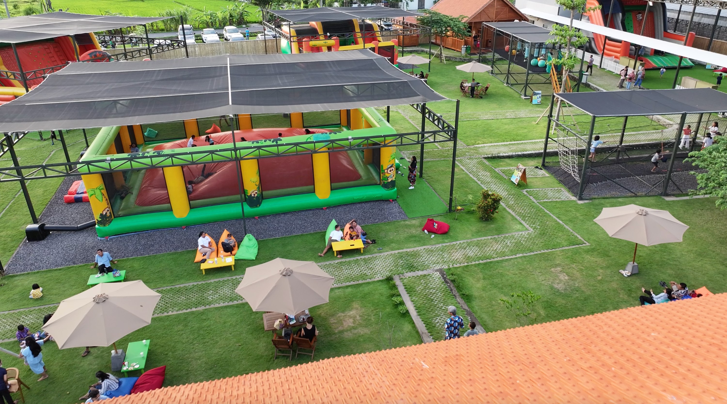 想找点事情做,和家人一起度过愉快的一天?Mookiland 是玩耍、探索和创造永久回忆的完美场所。如果您饿了,可以品尝美食,并前往餐厅欣赏美丽的稻田景色。在炎热或小雨时段,我们超过 500 平方米的半室内游乐场为所有年龄段的儿童提供安全愉快的环境。