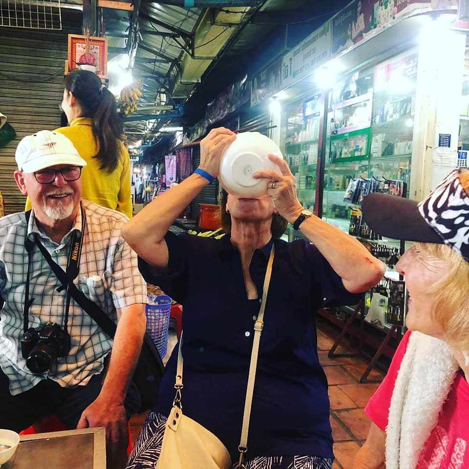 在导游的带领下漫步市场,探索柬埔寨美食。