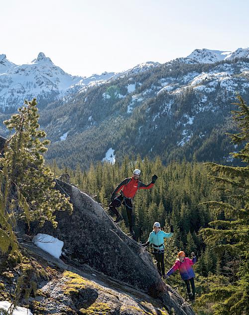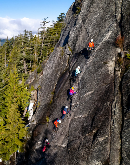 您将穿过狭窄的步道,穿过悬索桥,并使用钢梯和固定缆索系统攀登冰川磨损的花岗岩板。最后,路线在 Summit Lodge 的观景台附近以壮观的终点结束。