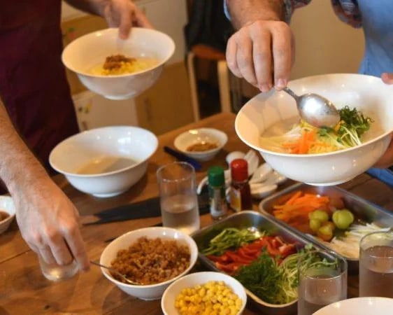 随着日本变得越来越国际化,对素食、无麸质和纯素食选择的需求不断增长。日本各地的厨师们一直在努力创造出更适合饮食的日本著名菜肴。参加这个烹饪课程,让纯素拉面变得如此美味,甚至可能比原来的味道更好。学习传统技术,使用所有纯素原料从头开始制作拉面。然后自己制作不含任何肉类和动物产品的饺子作为配菜。当您做饭并与专业教练和同学聊天时,享受班级友好的氛围。带回家一份食谱,在家里重现这个日本宝藏。