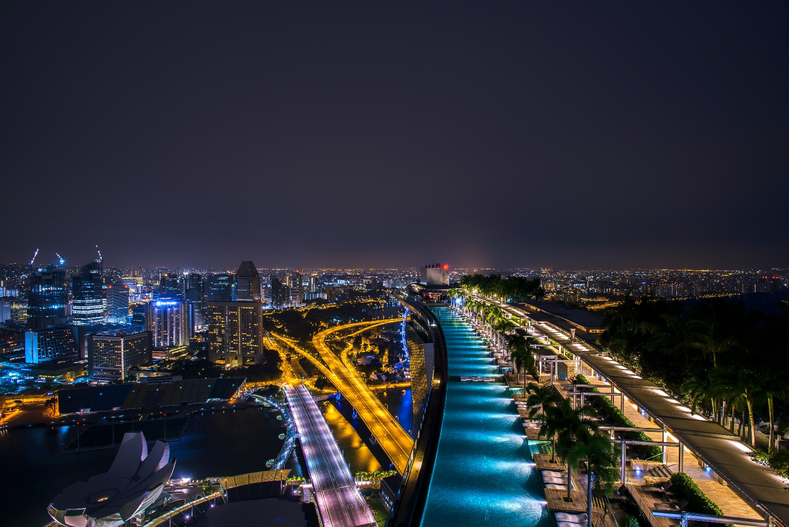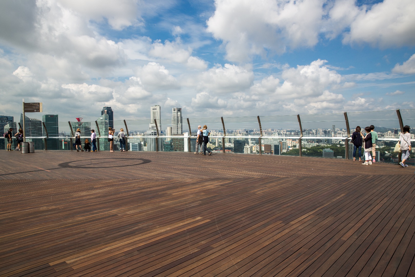 在滨海湾金沙空中观景台欣赏新加坡标志性天际线