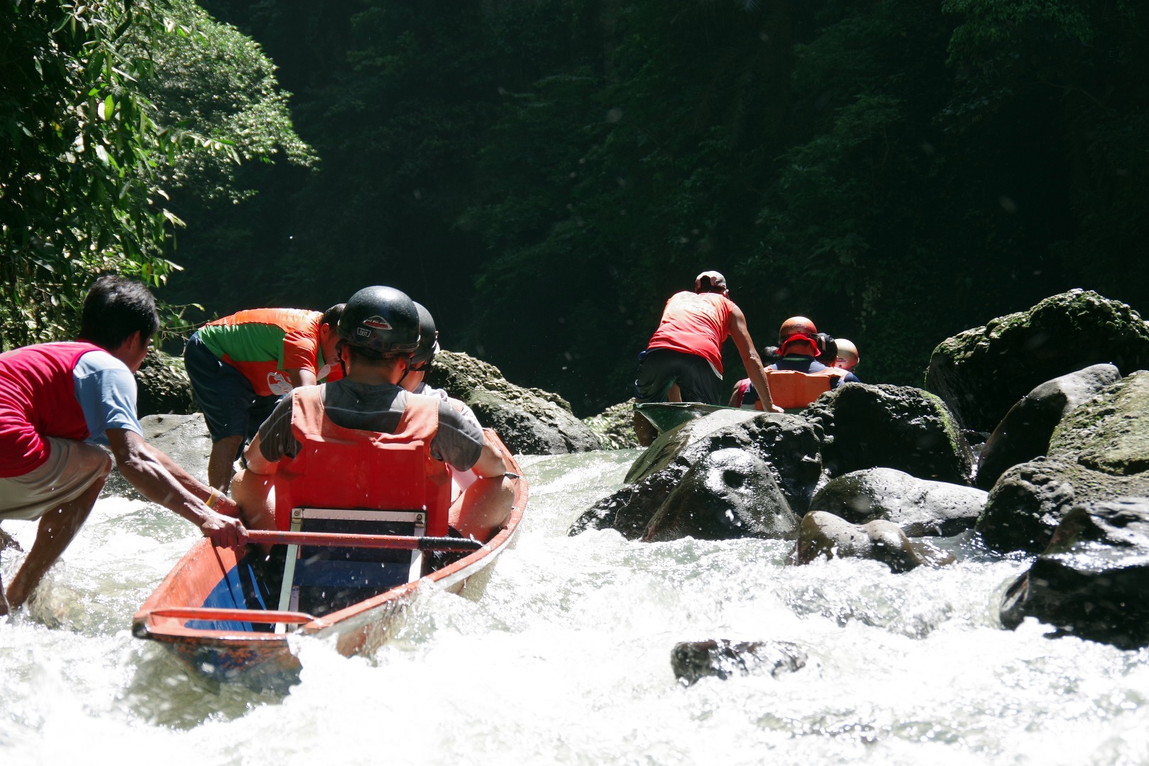 在您的河流旅行期间,在您的 banca 两端的专家 banceros(船夫)的手中感到安全