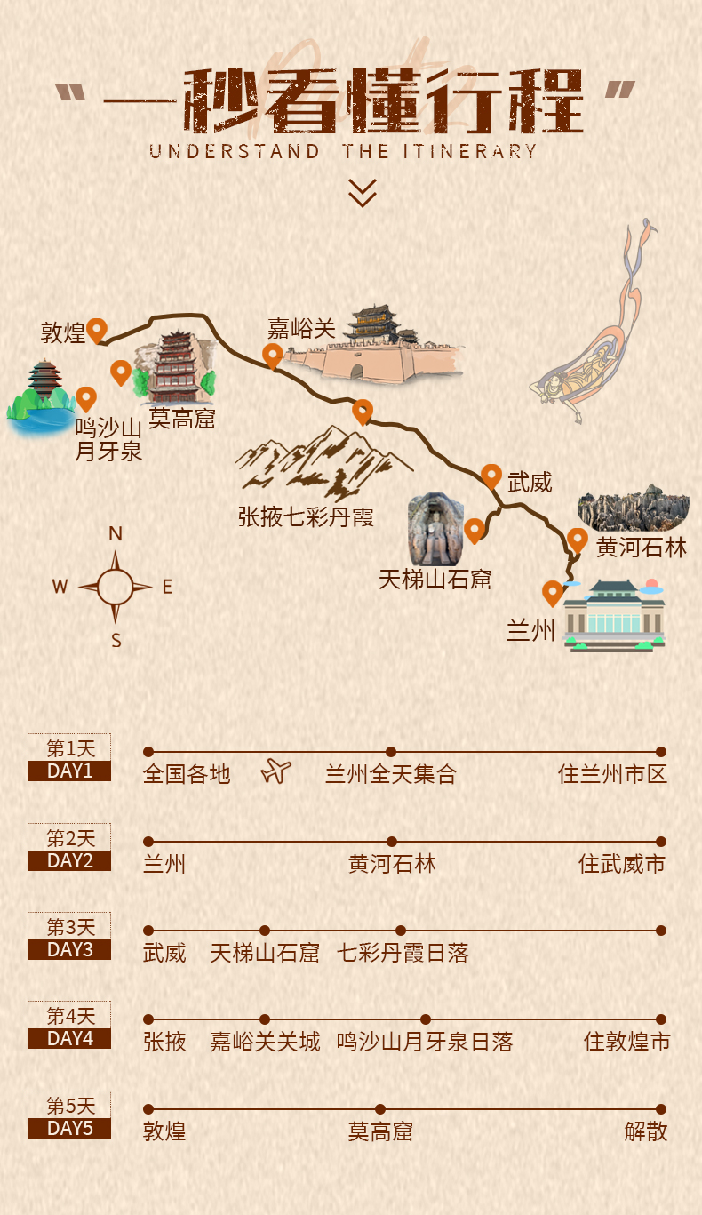 甘肃河西走廊5日游(兰州集合+赠送航拍+黄河石林+天梯山石窟+七彩丹霞日落+嘉峪关+鸣沙山月牙泉+莫高窟)